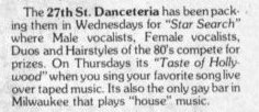 27th Street Danceteria was another in a long line of bars opened and managed by Chuck Cicirello, perhaps the most prolific of gay bar owners in Milwaukee's history. Chuck previous operated the Neptune Club, then the legendary "Factory" bar and two other follow-ups to that (Factory II and 3). Originally opened as a juice bar to make for a place for all ages (including underage people) to meet, mingle, and dance, 27th Street Danceteria ran into a legal dilemma when it was discovered that dancing was not allowed past midnight unless the location held a liquor license. It was thus forced to apply for a liquor license to make dancing available up to bar-closing time. Originally attracting all gays and lesbians (due to Chuck's previous mega-bars, the Factory bars), 27th Street Danceteria eventually become known more as a black gay/ lesbian bar and dance club. The bar closed in June 1987. More information about this business is welcomed from anyone who can contribute it. |