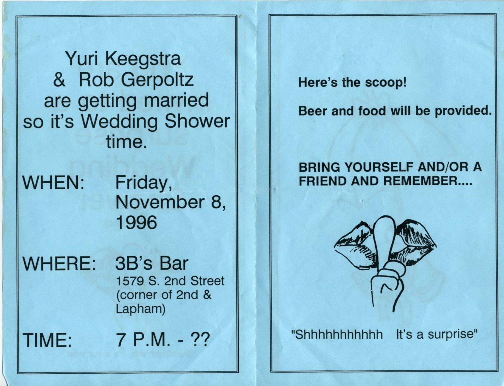 Wedding Shower Invitation, Yuri Keegstra & Rob Gerpoltz (November 1996)