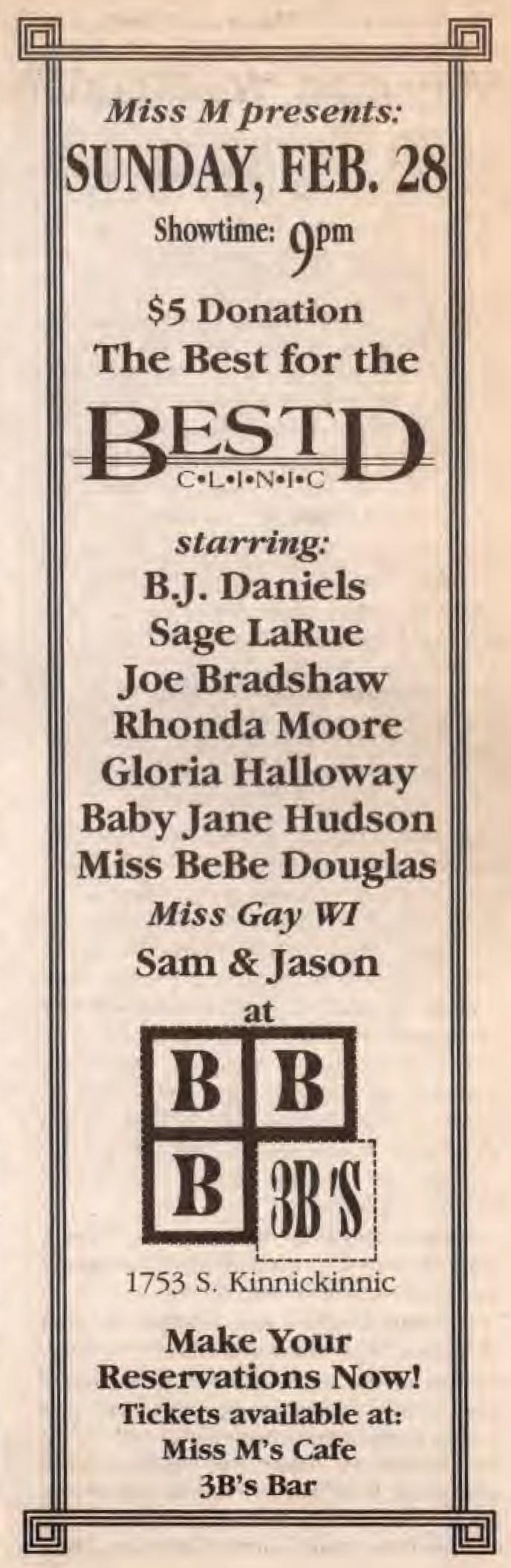 Ad, Miss M Drag Show to benefit BESTD Clinic (In Step v10-04 Feb 1993)
