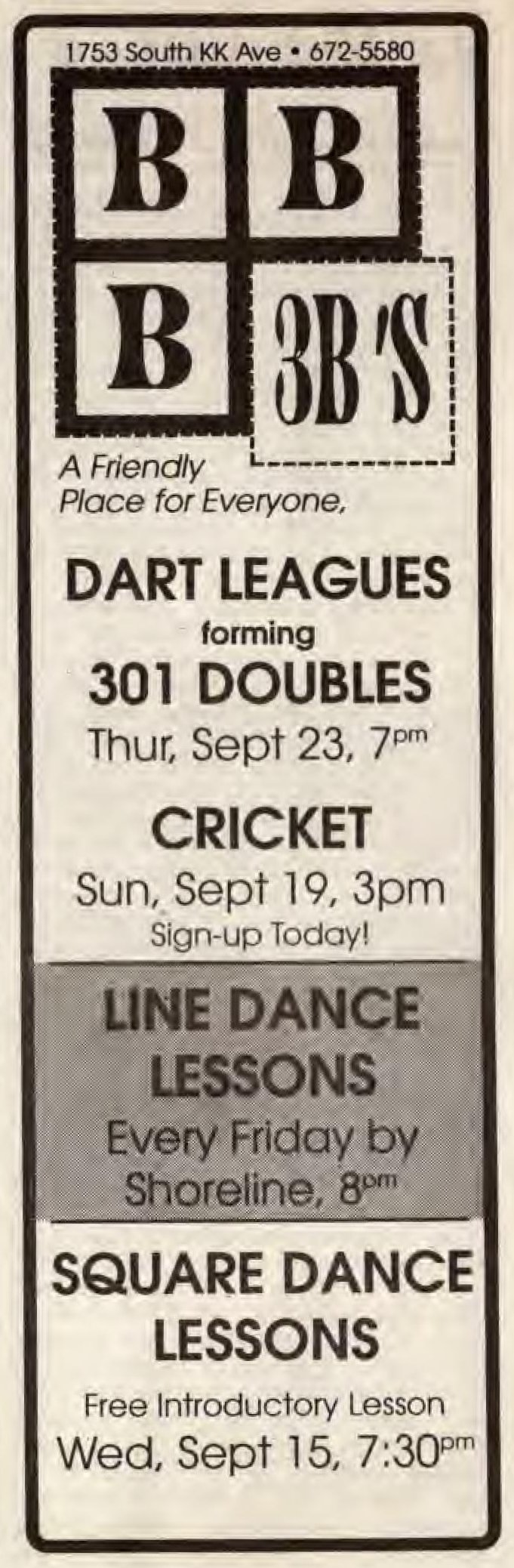 Ad, Dart League, Cricket, Line Dancing, Square Dancing (In Step v10-17 Sept 1993)