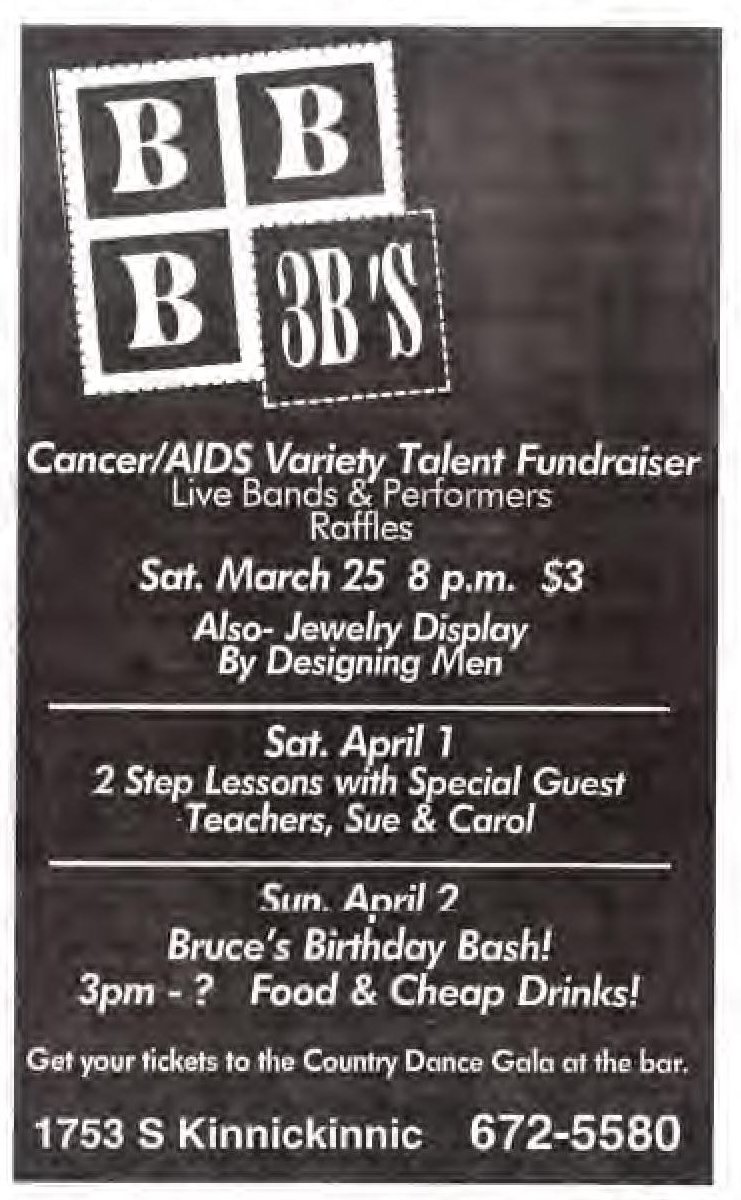 Ad, Cancer/ AIDS Variety Talent Fundraiser + Bruce's Birthday (Quest v2-04 March-April 1995)
