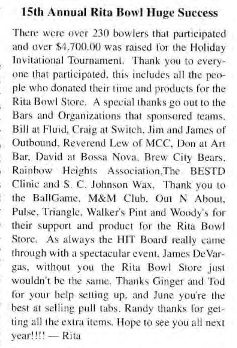 Article: already active in the community, the bar sponsored a team in Rita Bowl