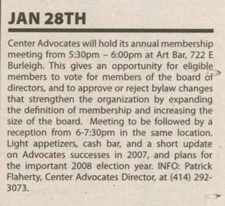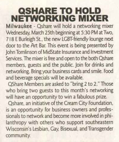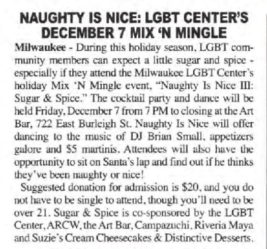 Article: upcoming Milw LGBT Community Center Mix n'Mingle event