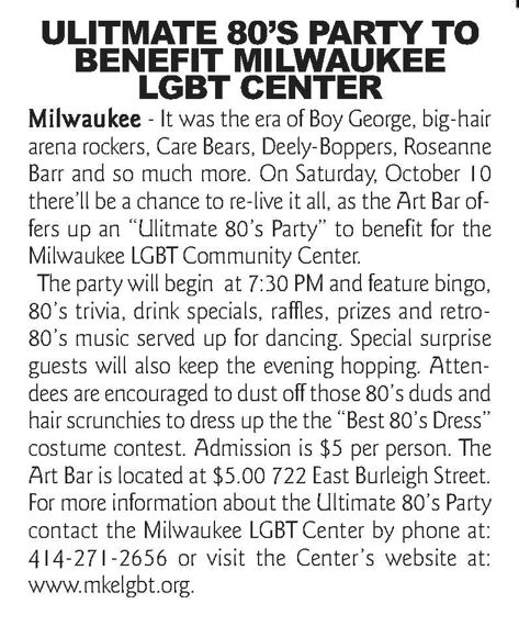 Article: Ultimaate 80's Party to benefit Milw LGBT Community Center