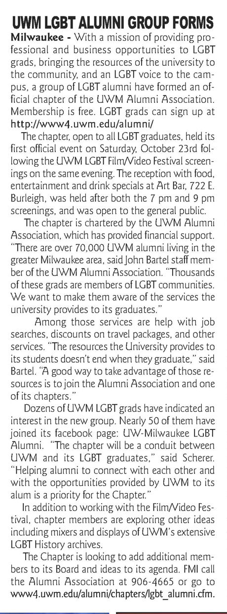 Article: UWM LGBT Alumni group forms with first reception at Art Bar