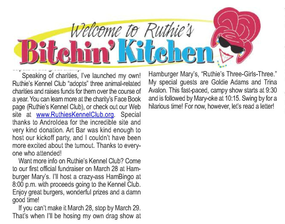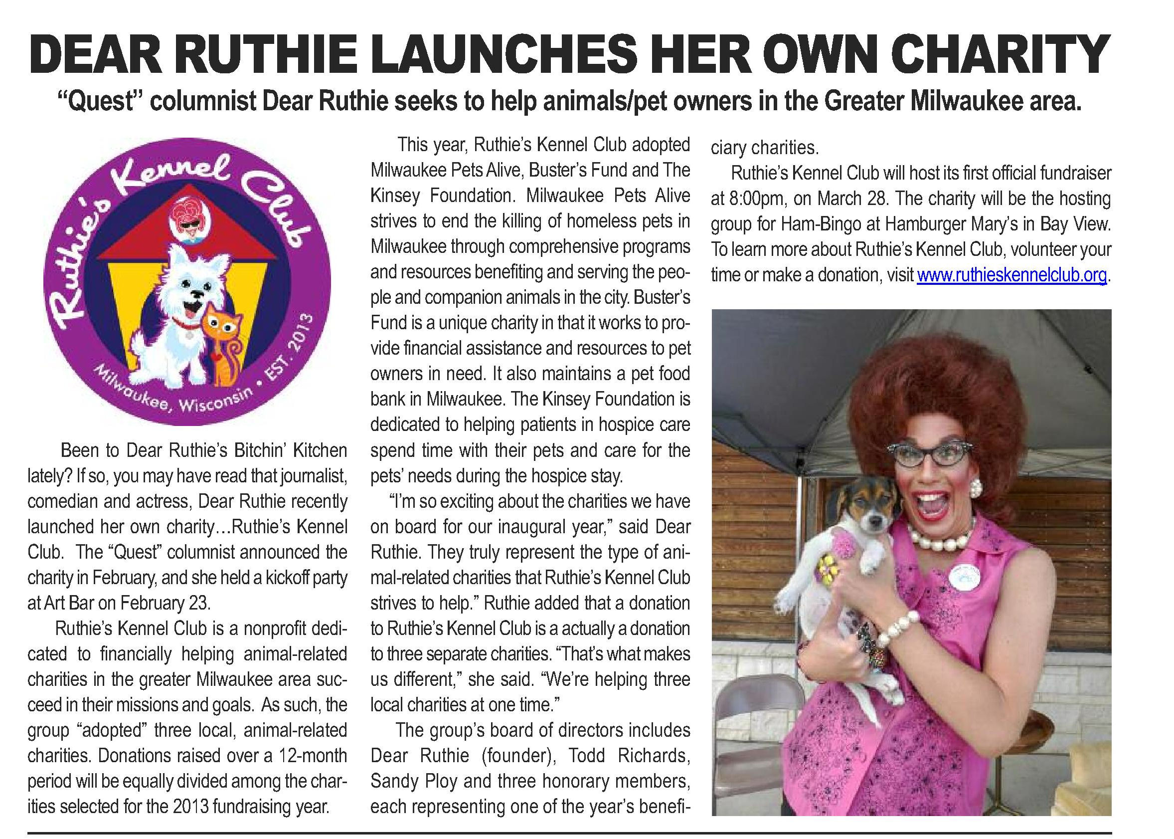 Articles and Photos: Dear Ruthie starts nonprofit "Ruthie's Kennel Club"