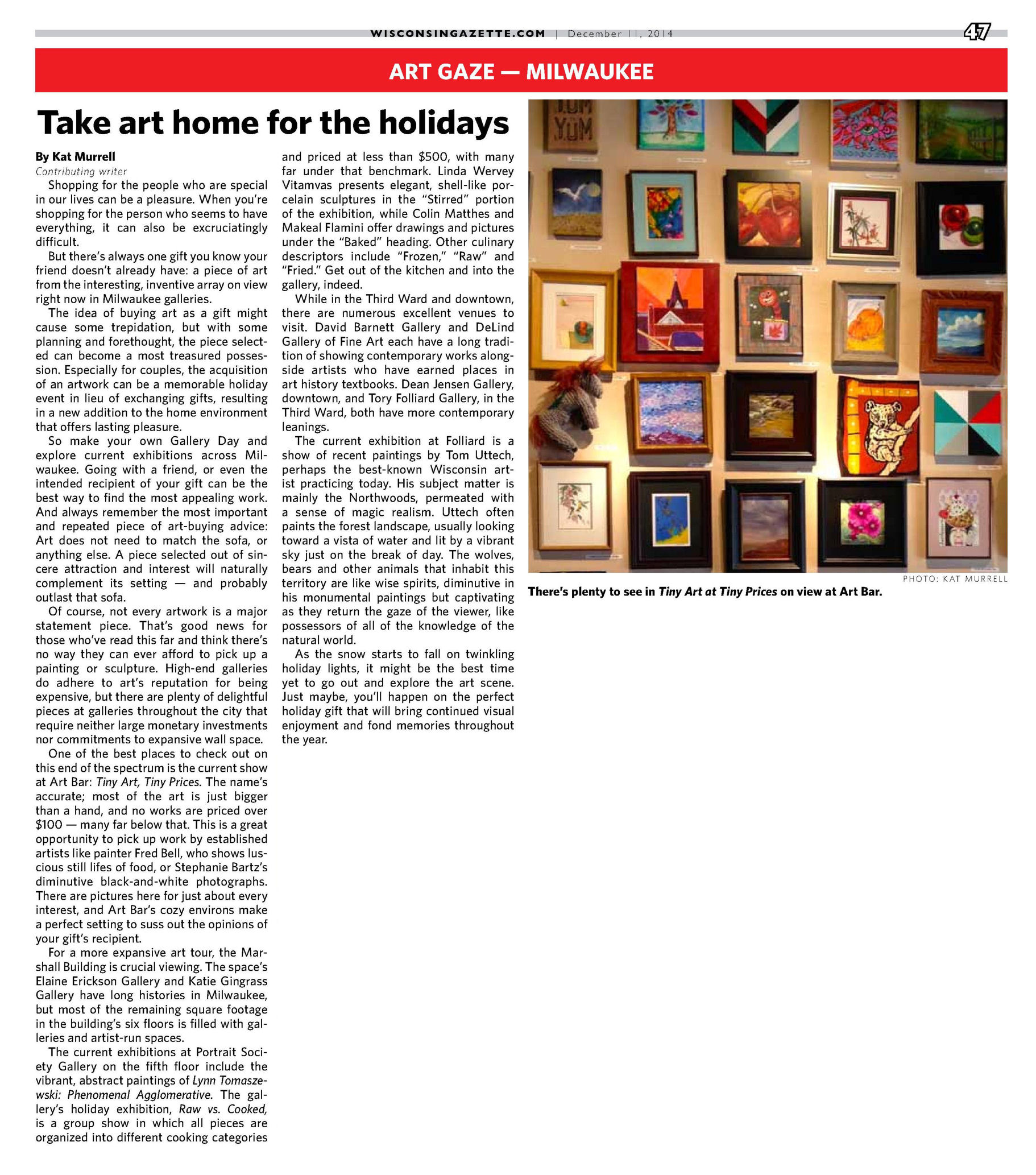Article: Take Art Home for Holidays (Art Bar is lower half of left column)