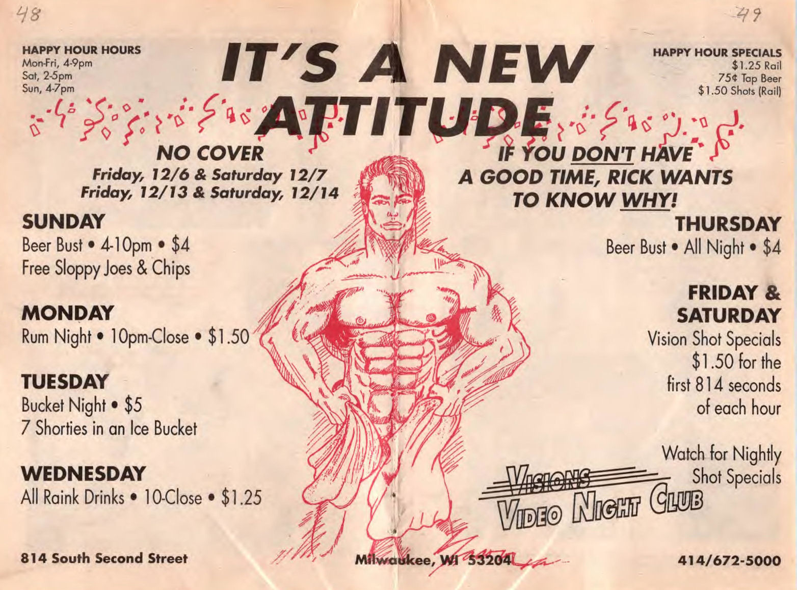 Web site Curator, Michail Takach, wrote the following history of this LGBT business location in September 2022. (Note that the individual web pages of those 8 businesses are updated as new informaion is discovered, so see those individual pages with the latest information about each business, and not necessarily the information below. For example, we now know that the Visions Video Night Club did open, but doesn't seem to have lasted more than a week or two; see that page for details.) Michail's writeup on the site: September 6, 1976: the Black Forest Inn (814 S. 2nd St.) hosts a massive outdoor carnival with food, drinks and games, which extends all the way across the alleyway to the parking lot of 'Your Place' bar (818 S. 1st St.) The Black Forest Inn opened in the former Good Luck Tavern (1953-1976) a Serbian bar owned by the Radicevich family that later opened Three Brothers Restaurant. By the 1970s, the Good Luck Tavern was operated by Mile and Nada Dragisich, and "The Europa Room' was famous for its raznjici sausage sandwiches. The summer of 1976 was the height of gay liberation in Milwaukee. Your Place had already been running for 11 years as the only gay bar south of National Avenue. Now, it had a lot of company: the Sugar Shack, the Decision (aka the Hideaway,) and now the Black Forest all opened nearby. 2nd and National was becoming a "gayborhood" for the first time. A ton of new bars were opening in the old gayborhoods in the Third Ward and 1st & Pittsburgh: Circus, M&M Club, Oregon House, the Side Door. The Black Forest Inn was a restaurant first, a bar second. It was opened by a gay couple who sought to create a world-class dining experience with the ambience of "the streets of Old Milwaukee." There may have been some partnership with Your Place, as the businesses shared ad space fot two years. The menu offered the usual Friday night fish fry, potato pancakes, schnitzels and steaks, a step above the workingman's bar food available at its neighbors. Unfortunately, the Black Forest Inn was seen as a "gay restaurant" at a time when few straight people visited gay spaces. Even Milwaukee's gay population didn't want to be seen in the daylight. The owners had overestimated how far gay liberation would go. The restaurant sadly folded after only two years in business. It closed in 1978. The Black Forest was followed by a long series of short-lived restaurants that continues to this day. In 1978, Roger Emerson of the Beer Garden opened "Rainbow Grille" which tried to be the brunch and afterhours destination. It was replaced by the Moulin Rouge steakhouse in 1980. In late 1980, Frank Thalacker opened Shadows, the most memorable of all restaurants ever to operate at this address. It was an immediate destination that received regional praise. The restaurant had 45 seats, was open daily from 11-11, and served drinks until 2. And it was a world-class dining experience, first and foremost: the seating area was reserved for "Diplomat Dining." "Chicago has nothing like Shadows. San Francisco has nothing better. And Boston, Philadelphia, Toronto and New York have no gay restaurant to surpasss Shadows," wrote Jon-Henri Damski. "Frank had no idea he was setting up a restaurant that would be the talk of traveling gays throughout the nation." Gay men of that generation remember Shadows as the first place they could show affection in public-- in fact, they were almost encouraged to do so. "It was the first place I could hold hands with a man in public," remembered Bunny. "You have no idea what a big deal that was back then." Shadows was replaced by Hot Legs, a women's bar, from 1984 to 1987. Remarkably, Shadows was reborn in December 1987 as "Shadows II," owned by Dan Hewett, lover "Dave," and partner "Matt." It was decked out in the most 80s colors-- mauves, maroons and pinks-- along with thick carpeting and track lighting. "There's nothing like this in Milwaukee," said Matt. Ads called it "the Midwest's most beautiful gay bar." But beauty wasn't enough. Shadows II closed in 1989. And the gay history of 814 S. 2nd St still wasn't over! In summer 1991, a bold ad promised the grand opening of "Visions Video Nightclub" on August 9, 1991. Oddly enough, the advertisement had the wrong address (813 S 2nd St.) Visions delayed its opening a week (August 16, 1991) which made people skeptical about its future. "You'll see why it's taking so long -- it's not the same old place!" wrote Ron Geiman in InStep. But did Visions ever actually open? There's no further mention of the bar nor any advertisements from August 1991 onward. Does anyone know what happened here? At any rate, that was the end of a 15-year gay occupation of 814 S. 2nd Street. And it all started at the Black Forest Inn, a little restaurant that dreamed big. Share YOUR memories -- of the Black Forest, Rainbow Grille, Moulin Rouge, Shadows, Your Place, Hot Legs, OR Visions -- and help us build out the Wisconsin LGBTQ History Project! |