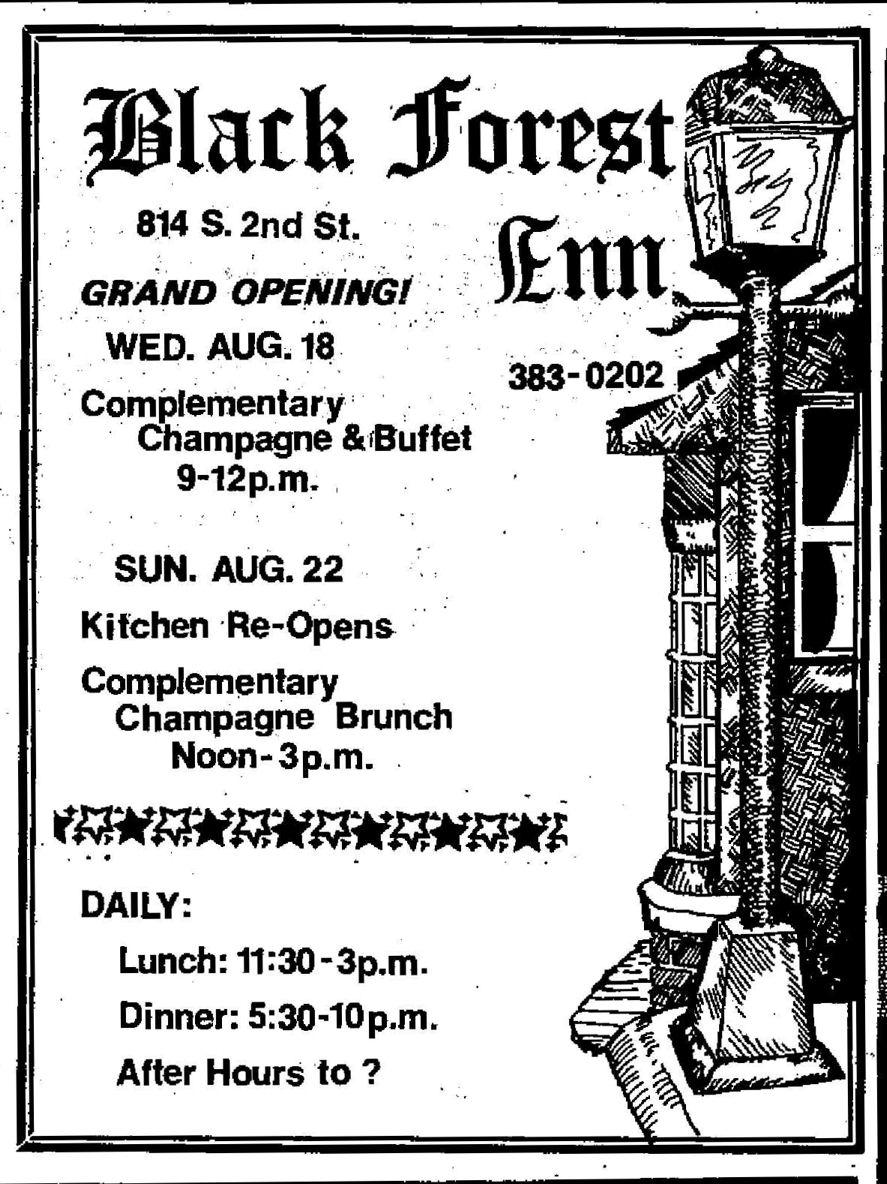 This website has documentation on a string of LGBT bars and restaurants that inhabited the ground floor of the building at 814 S. Second Street in Milwaukee over a span of 15 years. The Black Forest Inn, which opened on August 18, 1976 wa the beginning of the series of LGBT businesses in the building, spanning the period from mid-1976 to December 1991. (One has to wonder if the location was jinxed, as of the 8 businesses, half closed within a year of opening):