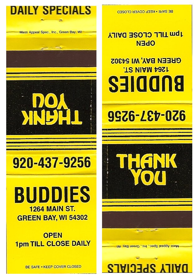 Buddies' was a new lounge/bar that was opened in Green Bay by owners Phil and Don, in December of 1997. (ad Quest 4-24 pg 21)