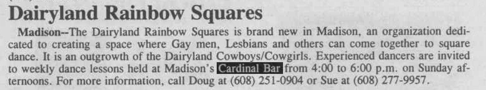The Cardinal was the longest-operating LGBTQ landmark in Madison AND the nation's longest-running nightclub when it closed. It was also the longest-running Latino-owned business in Madison. We thank Ricardo for 43 years of hot, sweaty, happy memories!