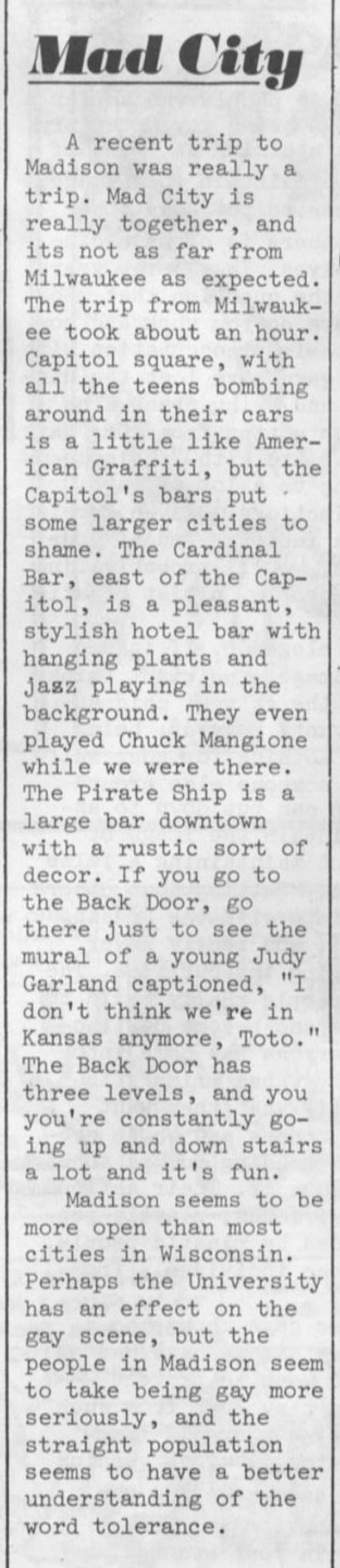 History of Gay and Lesbian Life in Wisconsin - Businesses - Bars and Clubs