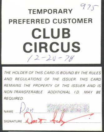 Recollections: The following are recollections of others who have been kind enough to submit their personal memories to the webmaster. You are welcome to do the same! Circus - Was off and on popular dance bar. Remember guys doing line dances to songs like The Hustle and Ease On Down The Road. |