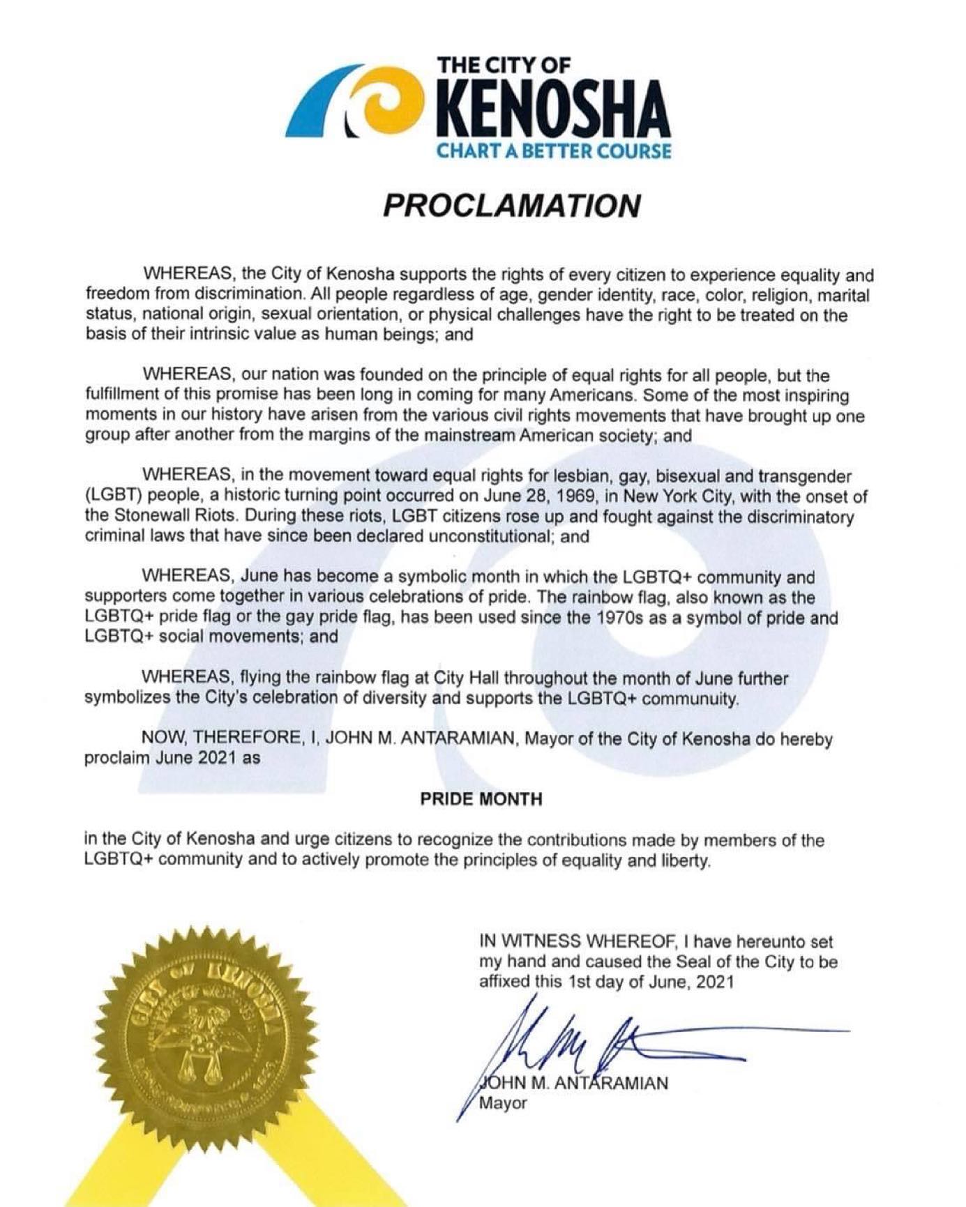 Kenosha Pride Proclamation (June 2021)