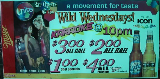 Bar banner, Wednesday specials June 2006