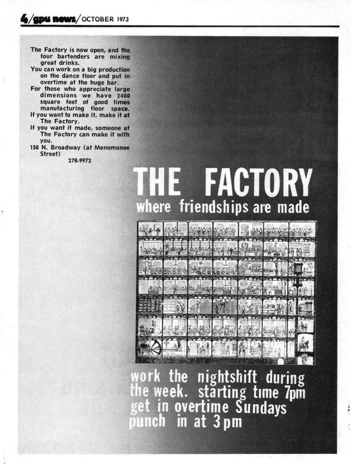 Ad: "The Factory/ The Only Disco/ ON BROADWAY"