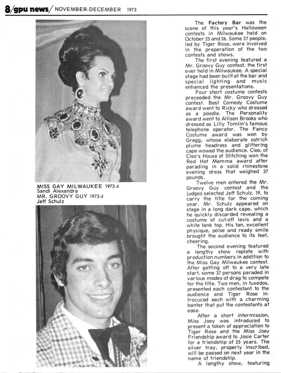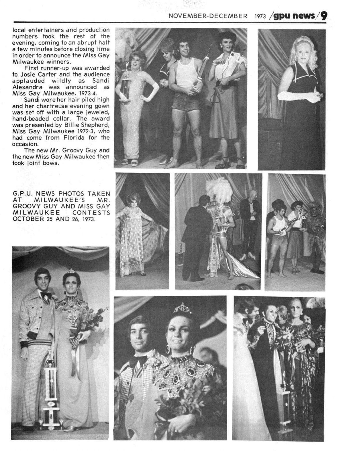 Second evening: Miss Gay Milwaukee contest (won by Sandi Alexander; first runner up Josie Carter);