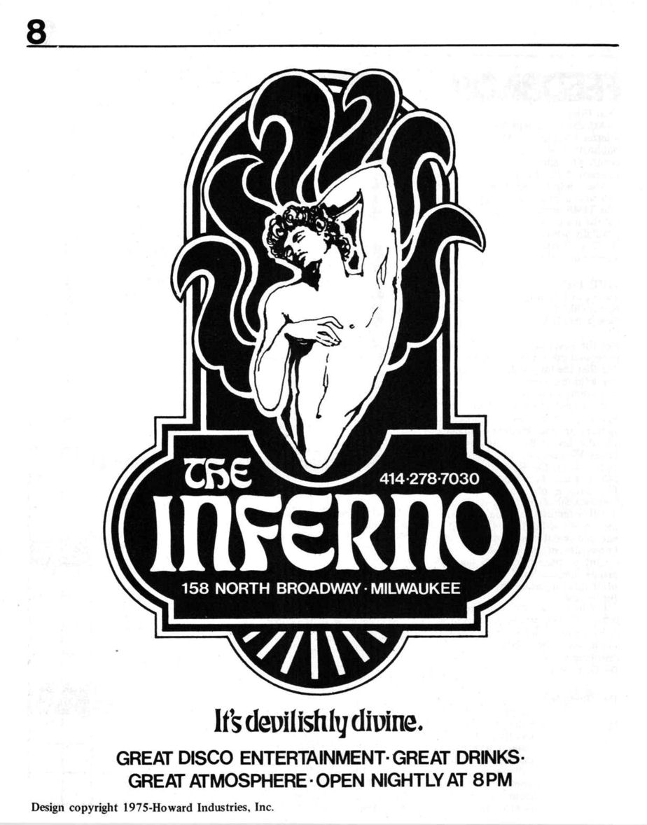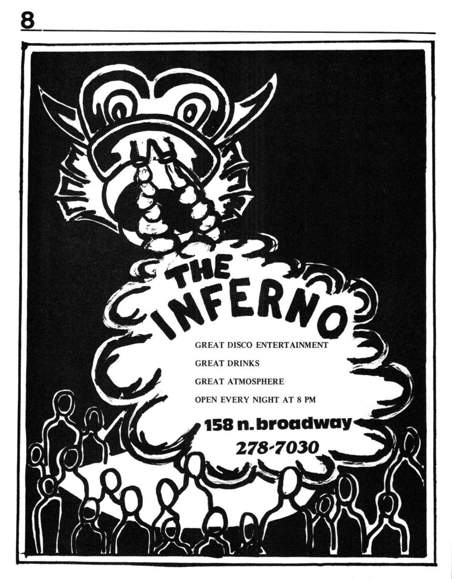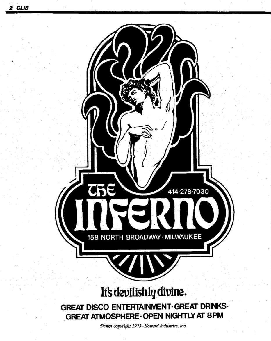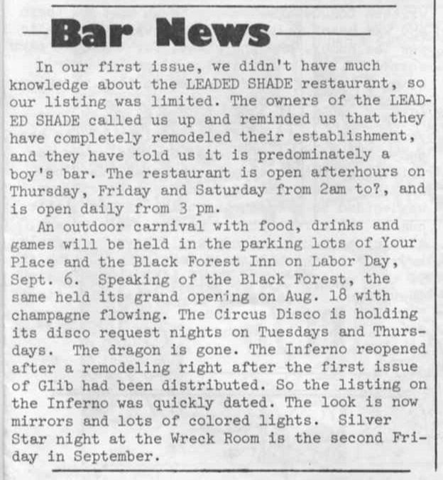 "The dragon is gone. The Inferno reopened after a remodeling right after the first issue of Glib had been distributed... The look is now mirrors and lots of colored lights."