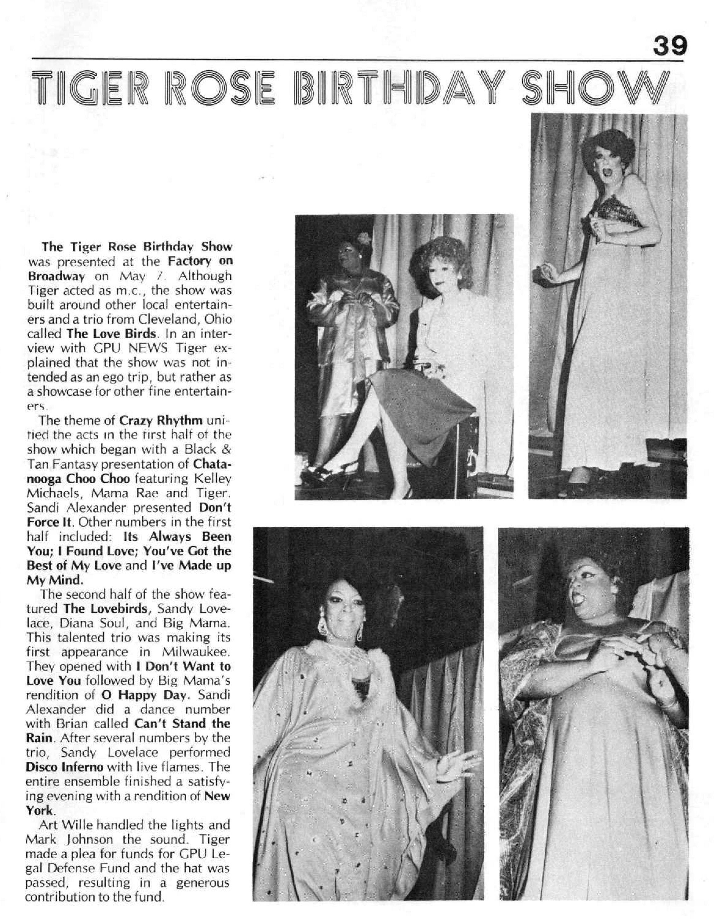 Article: Tiger Rose Birthday Show