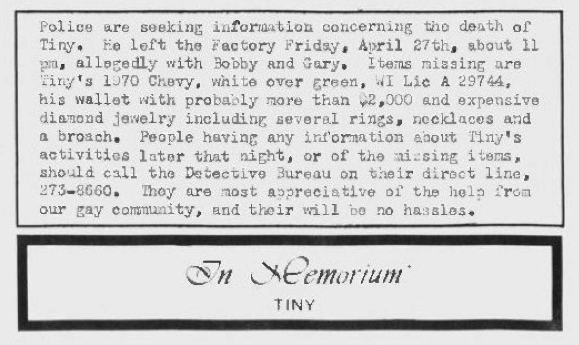 (Gay Milwaukee v. 4-01, Jan. 1981)