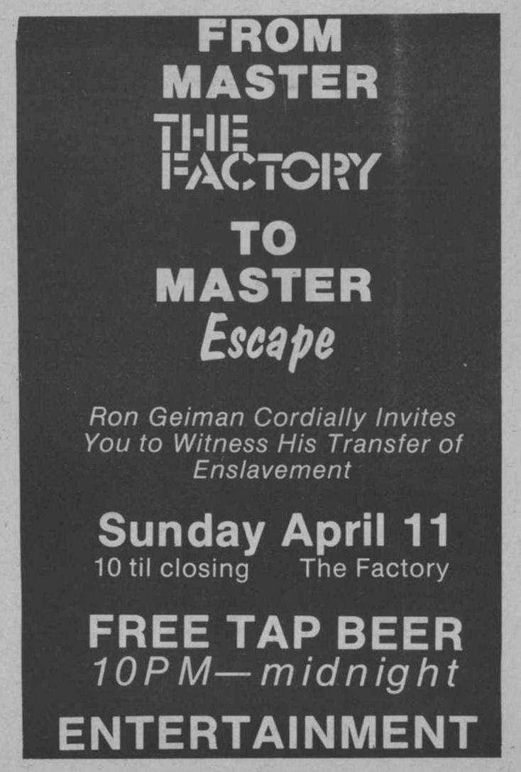 leaving The Factory to work for 'Escape' publication