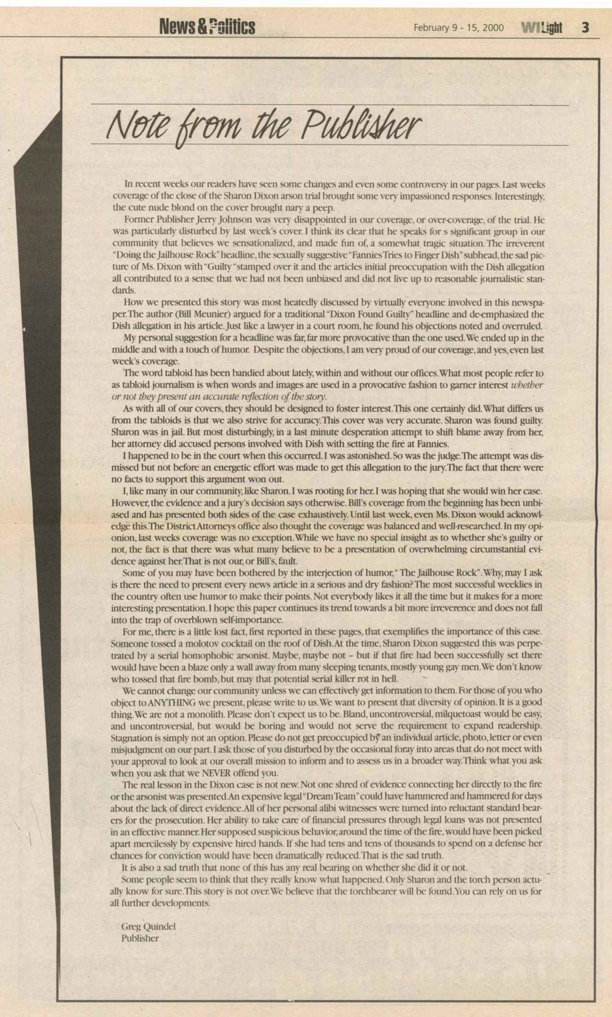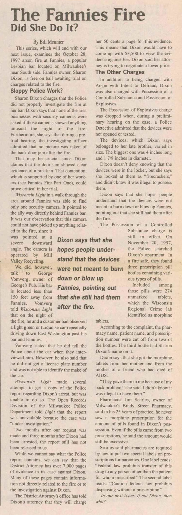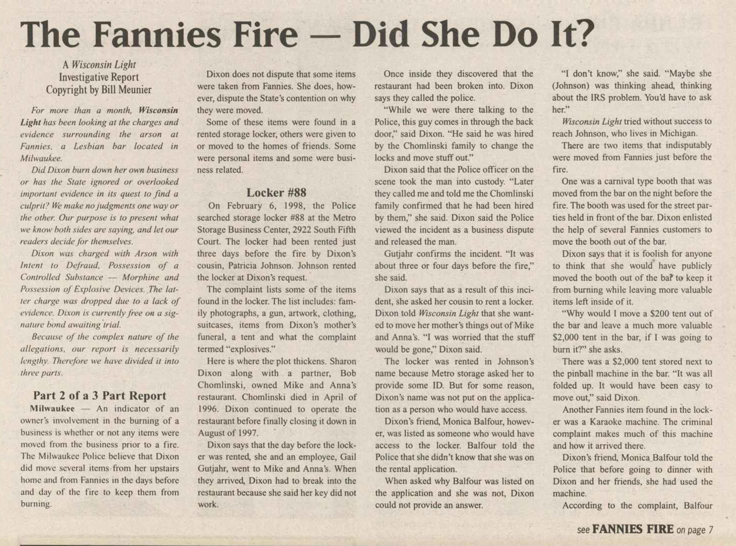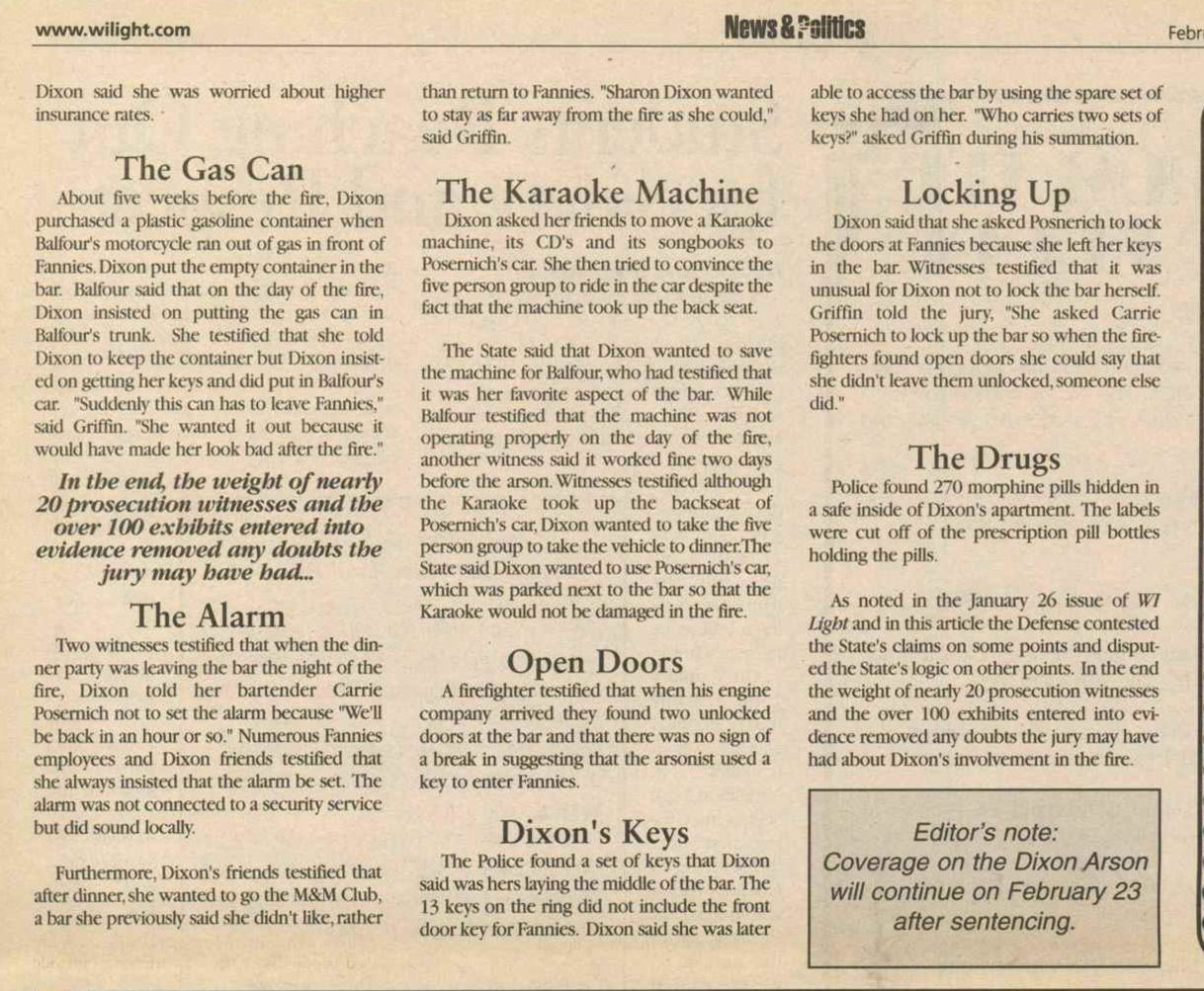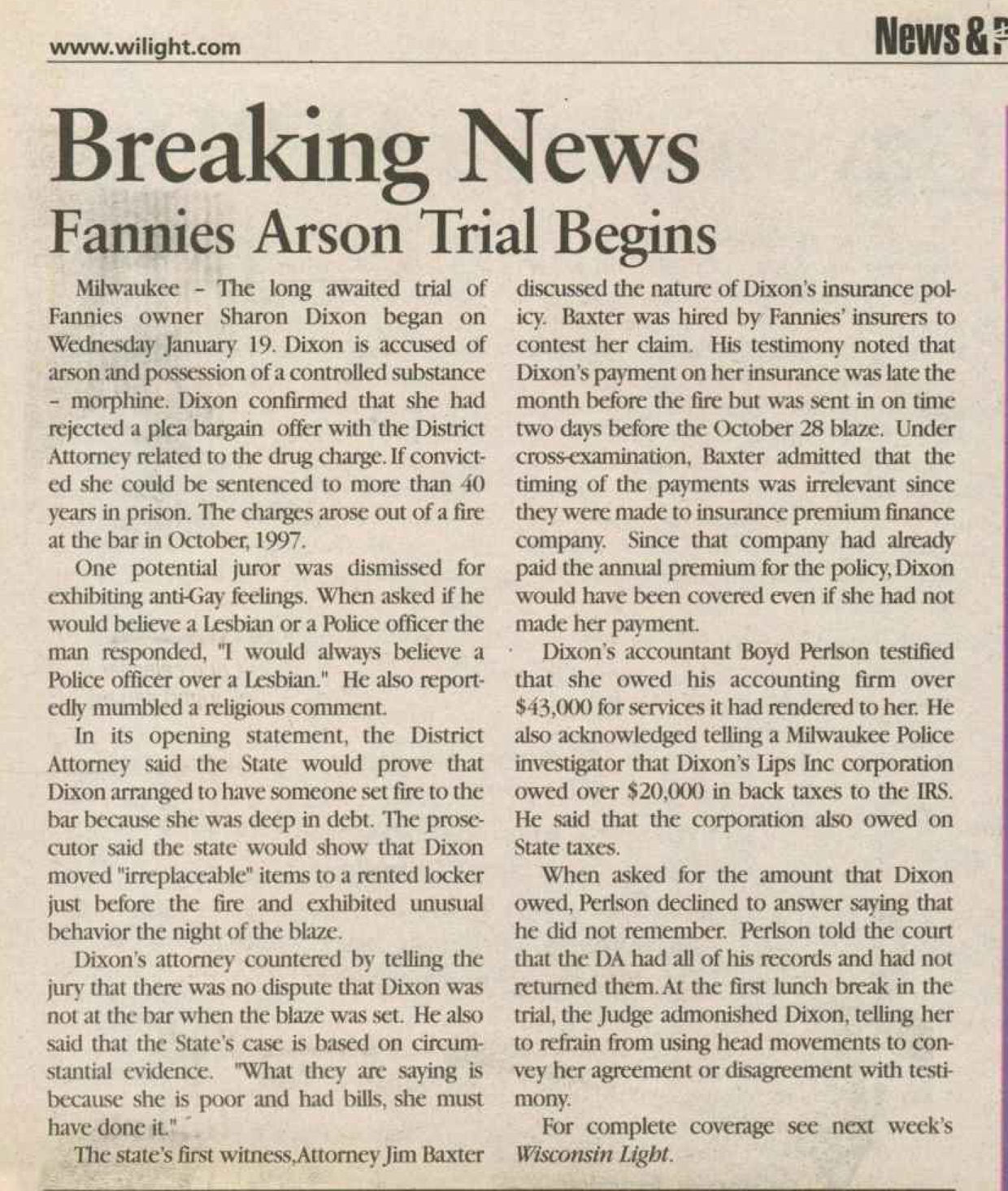 Article: Fannies arson trial, against owner Sharon Dixon Begins