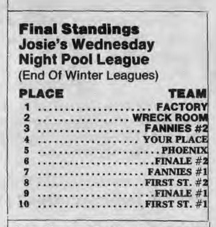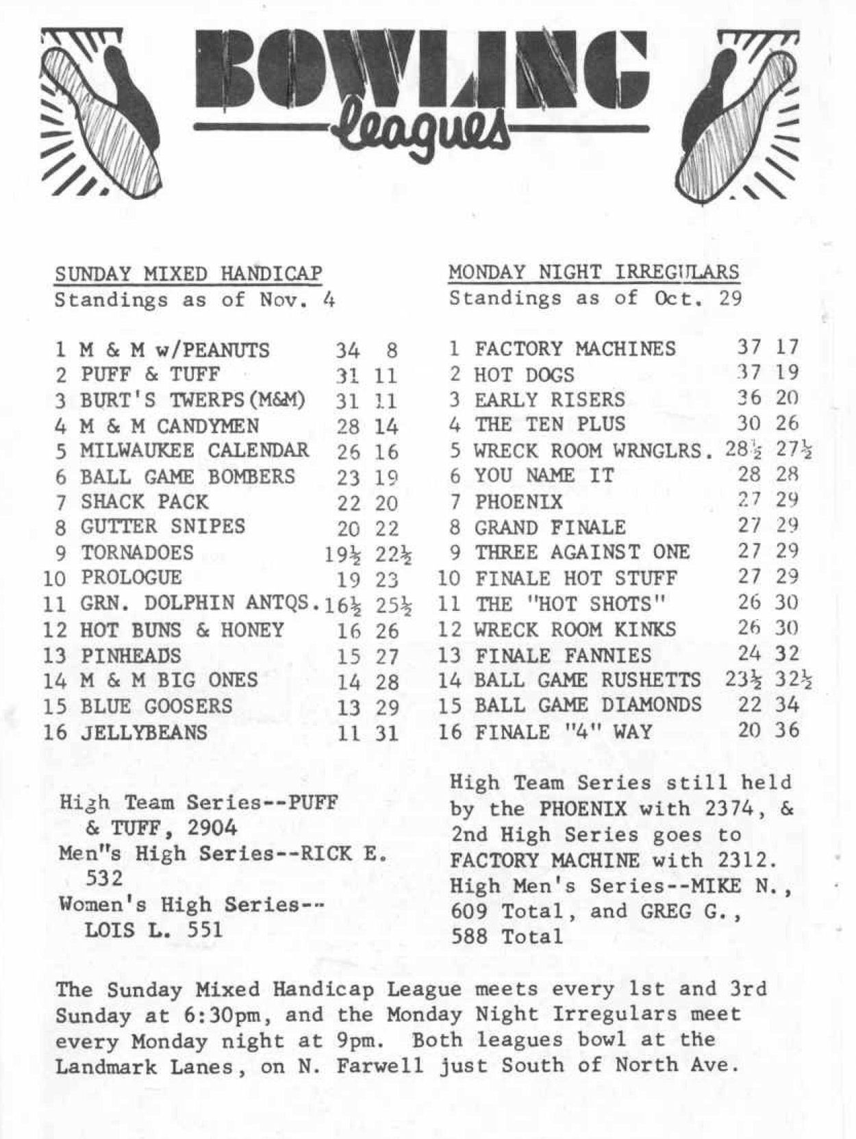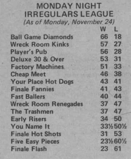 the bar 'Finale' named one of their Bowling teams the "Finale Fannies"