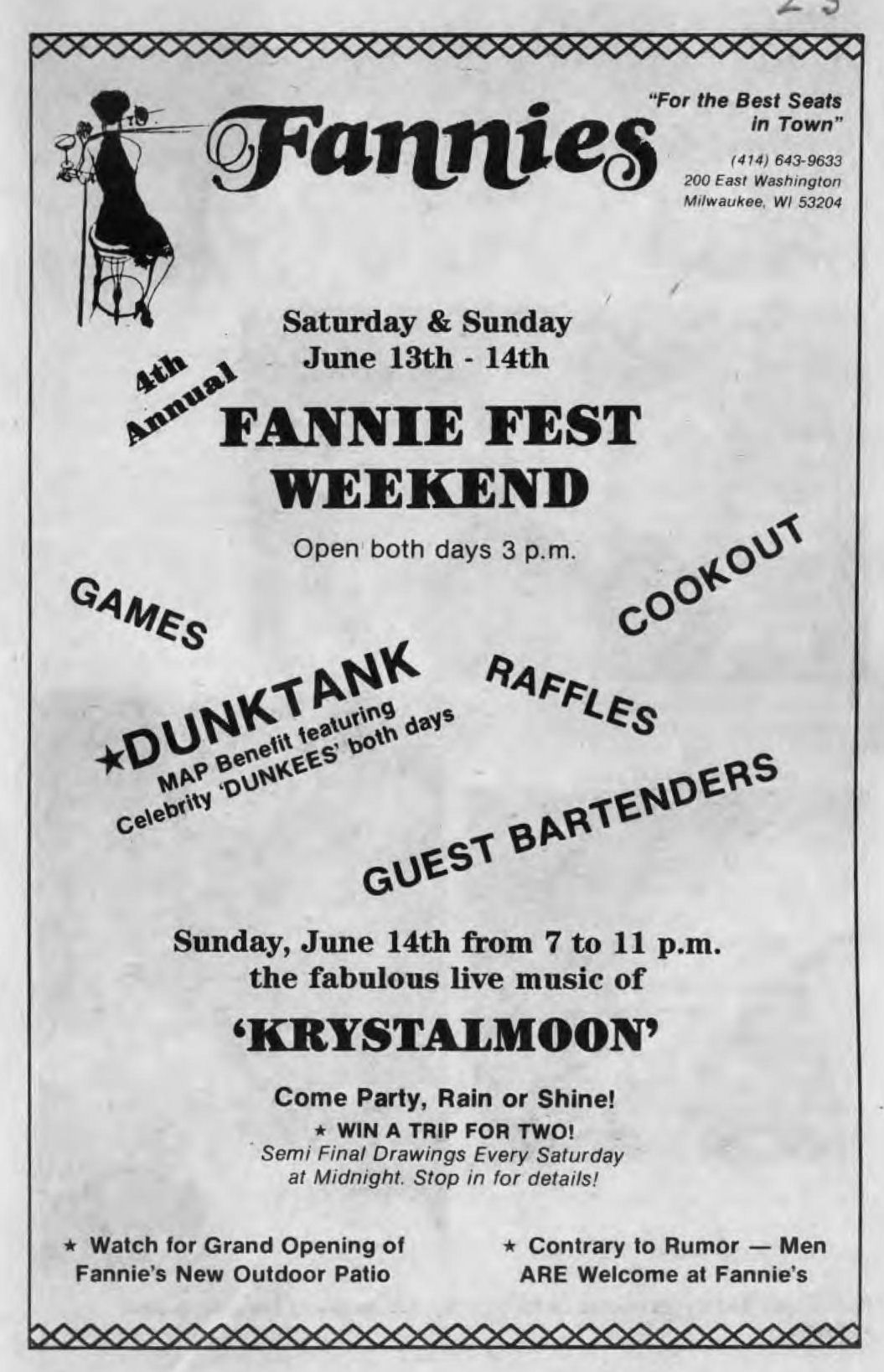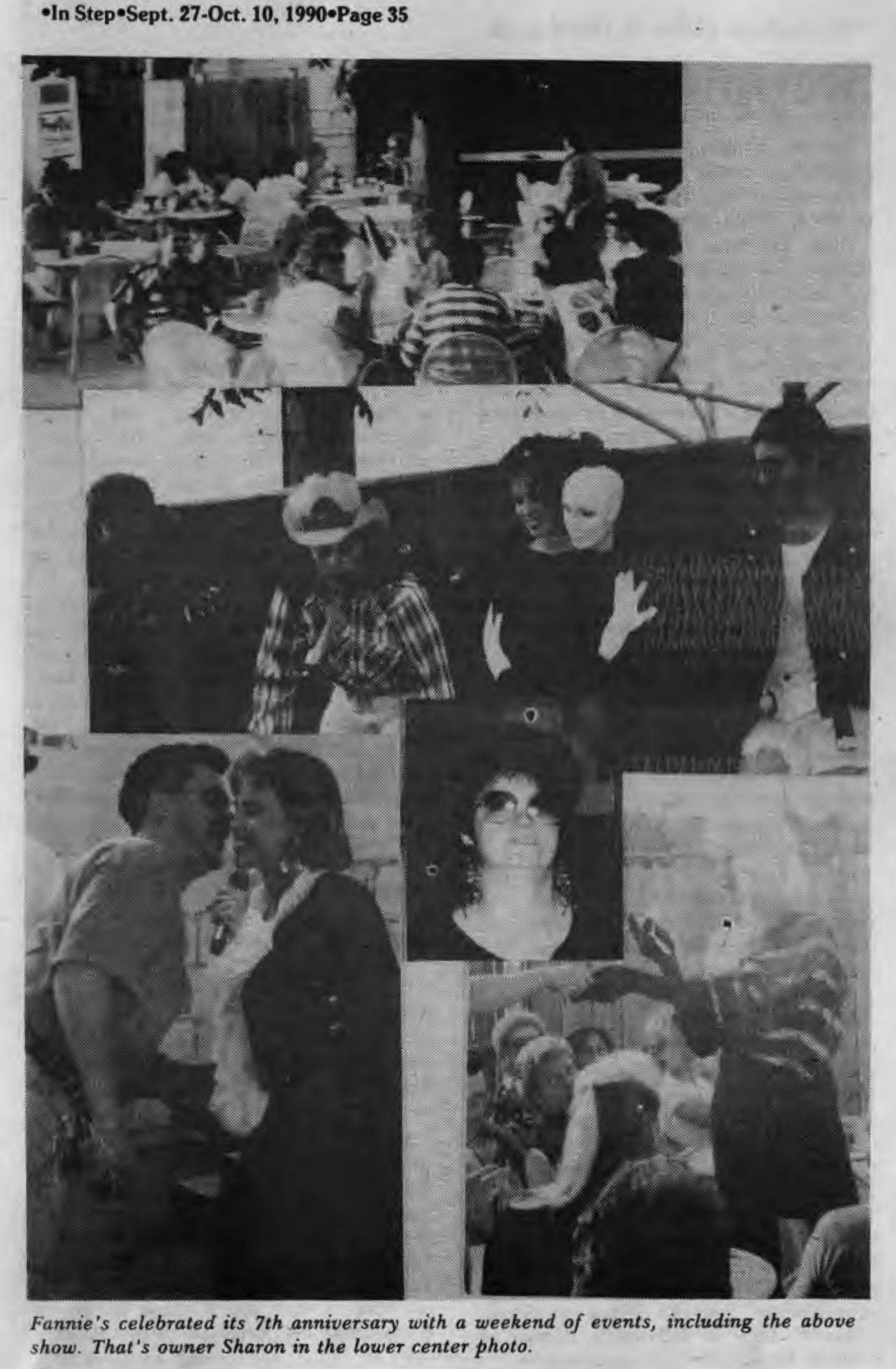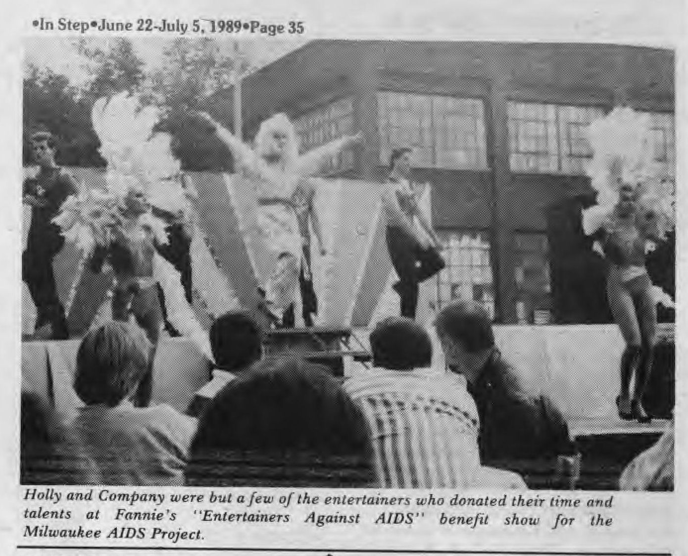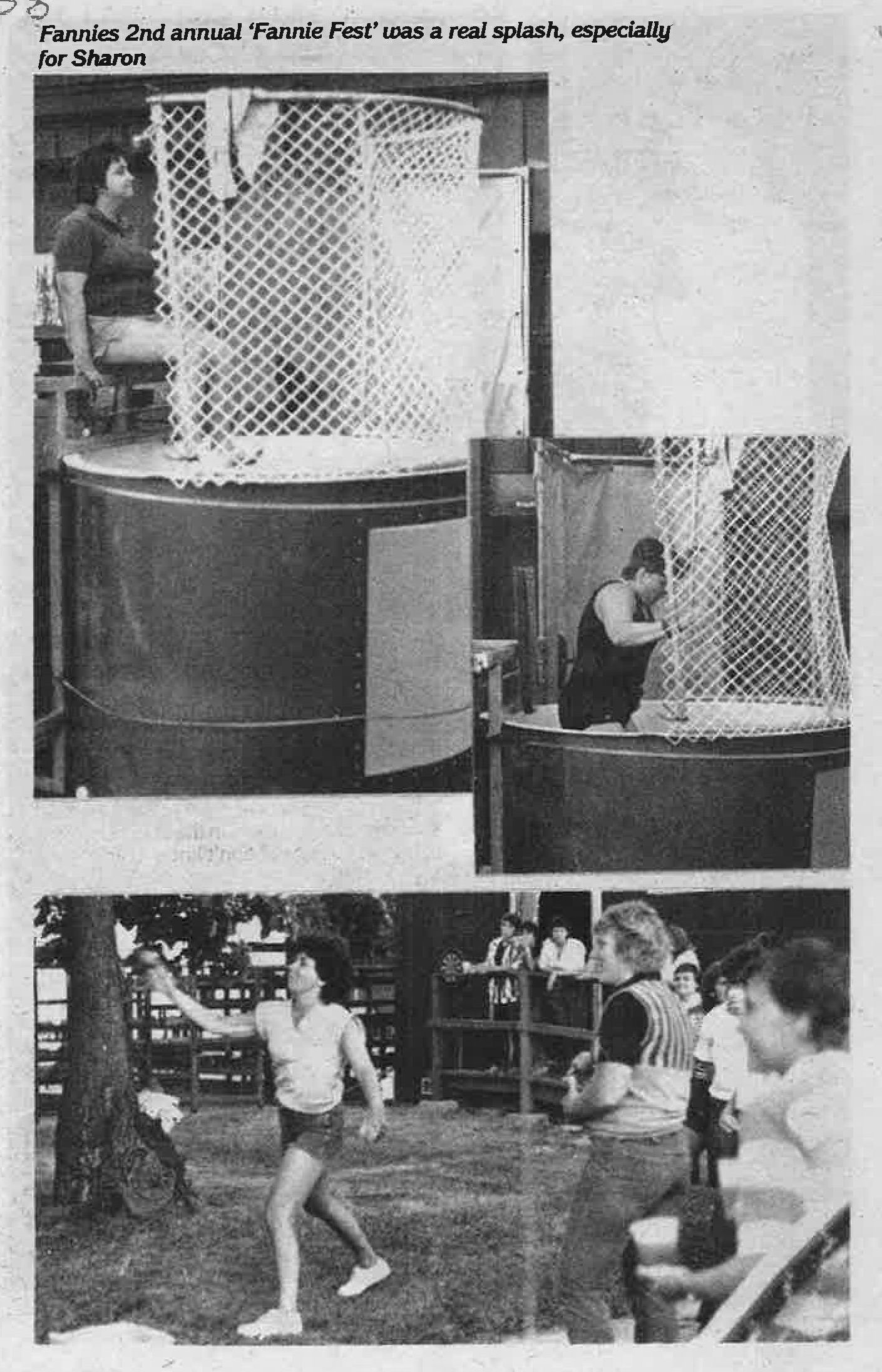 Photos, Article and Ad: 'Entertainers Against AIDS' fundraiser street party next to Fannies