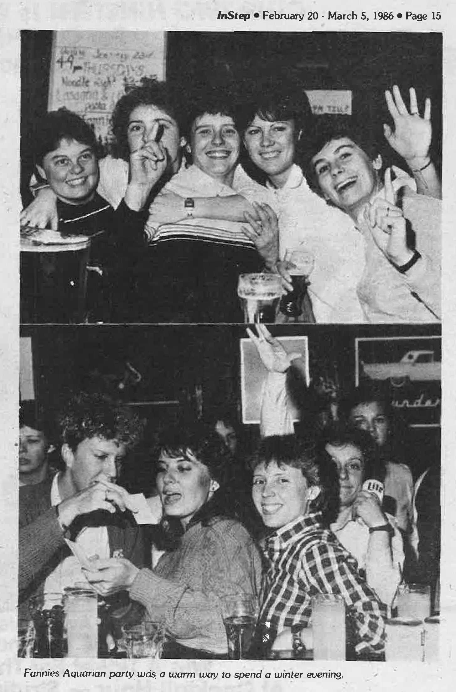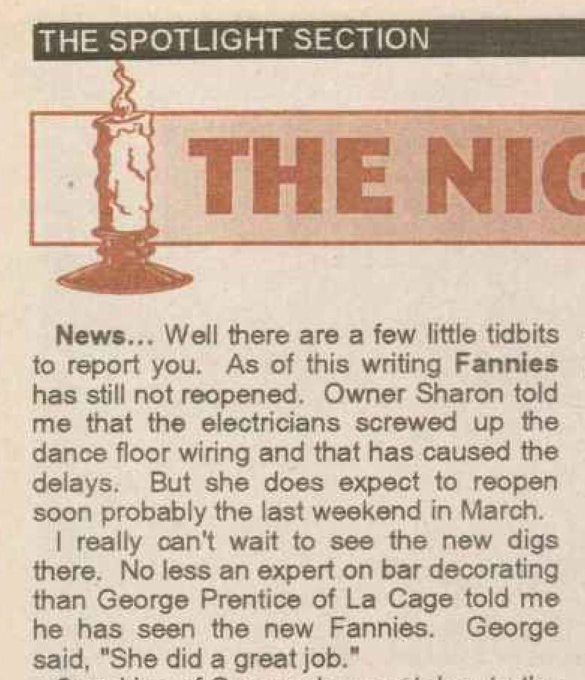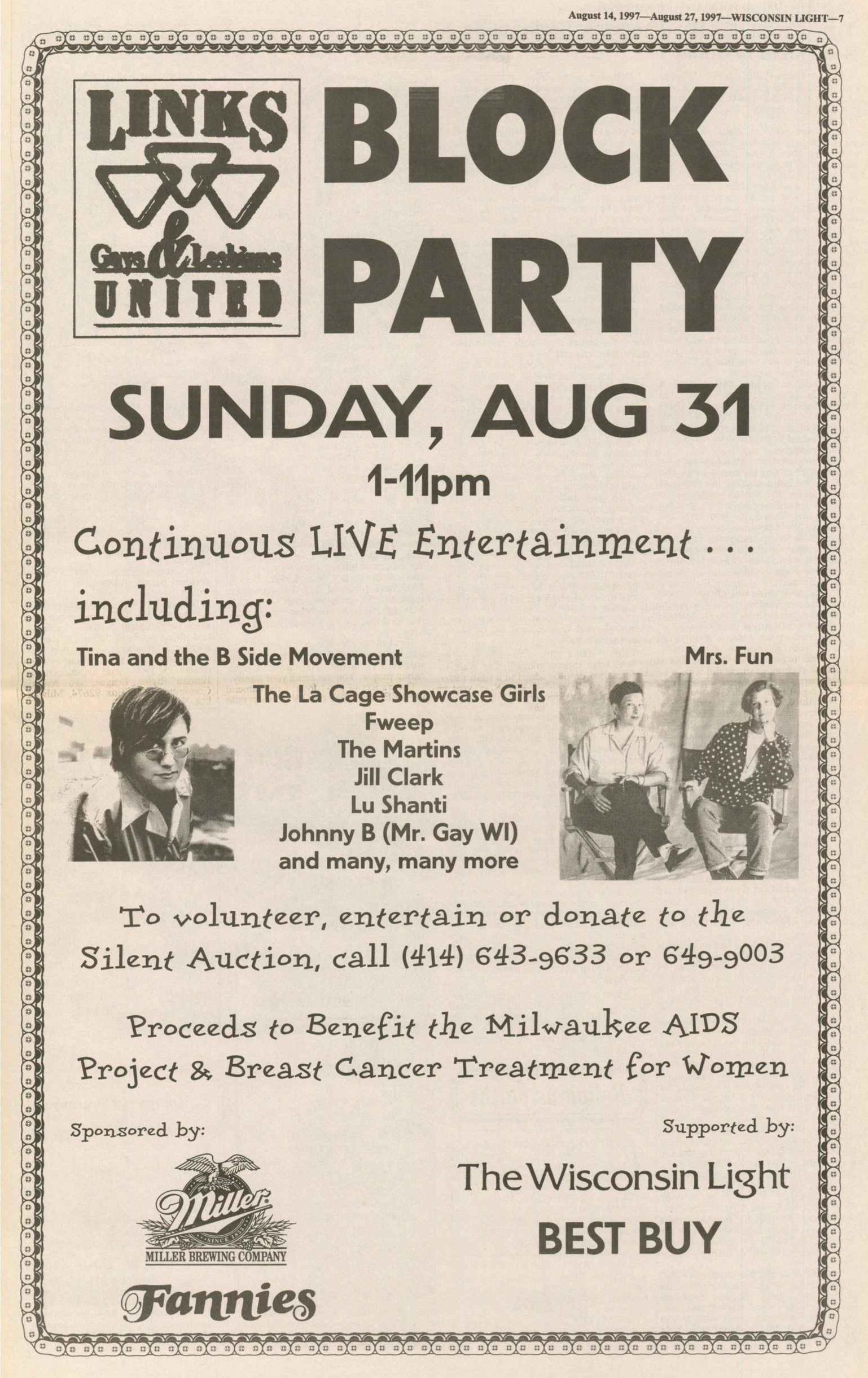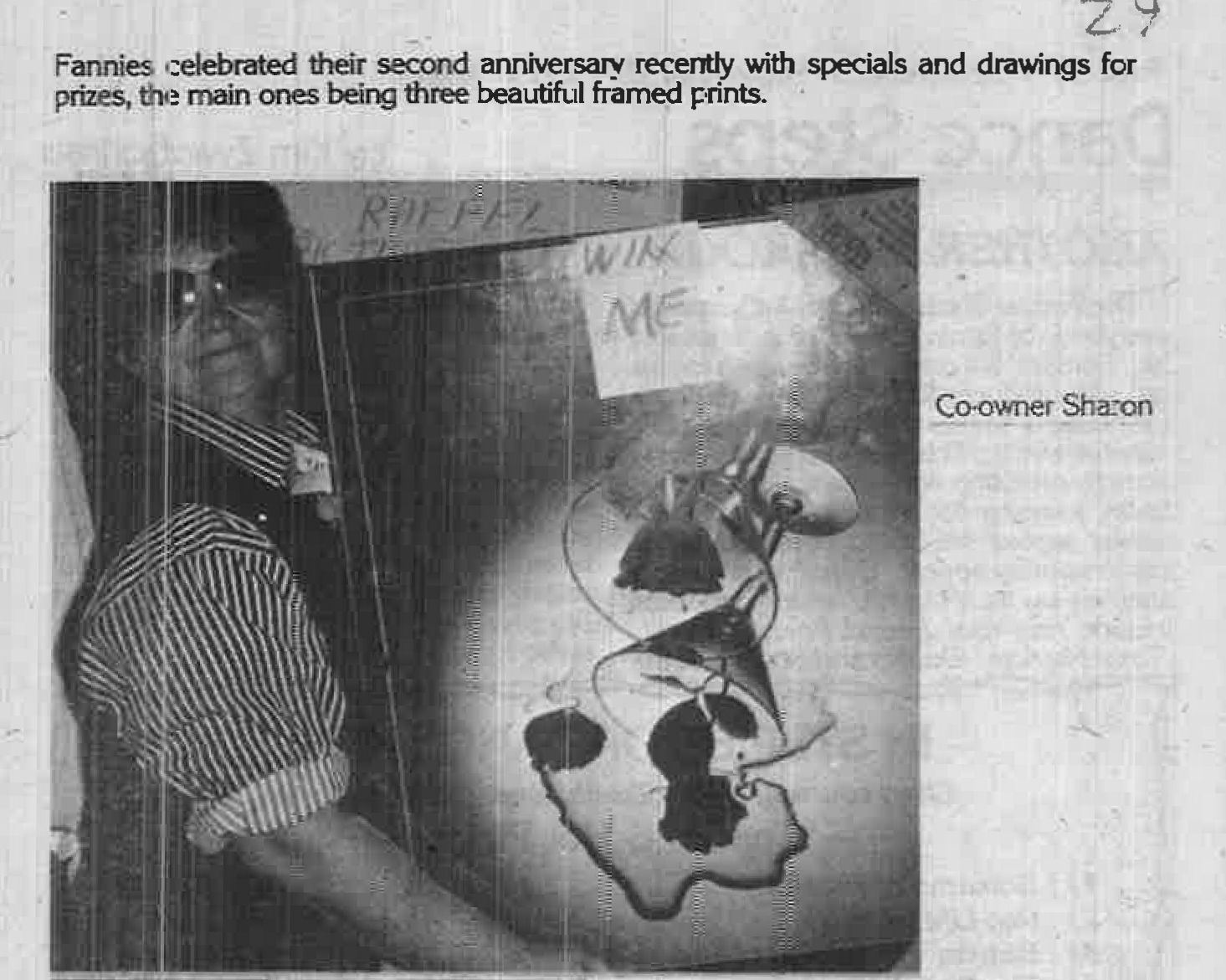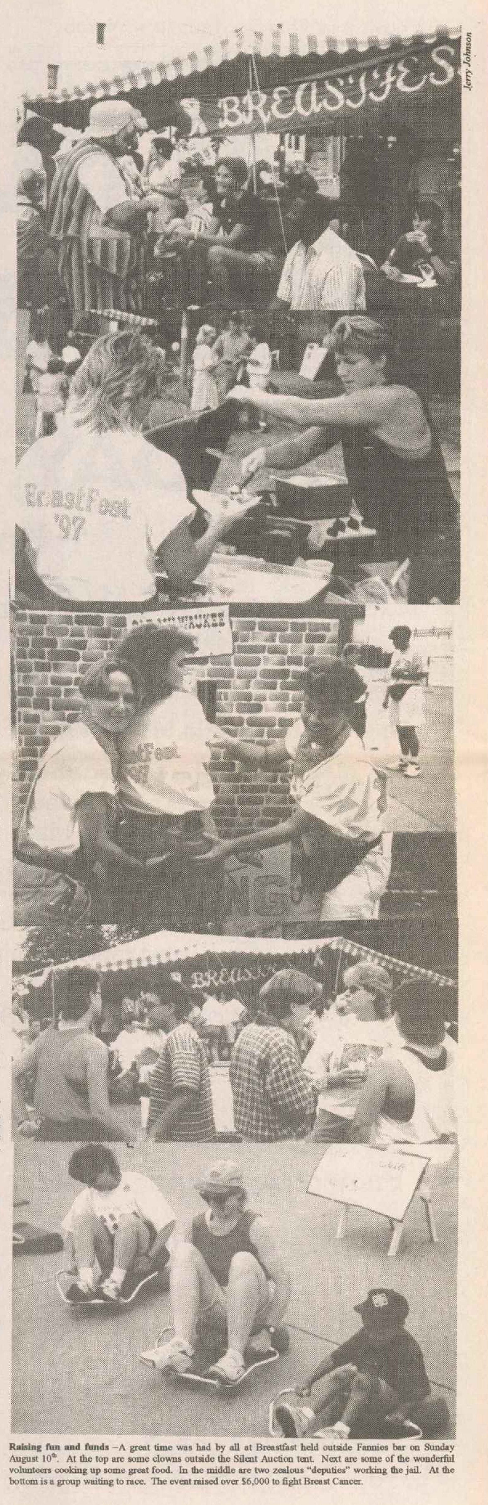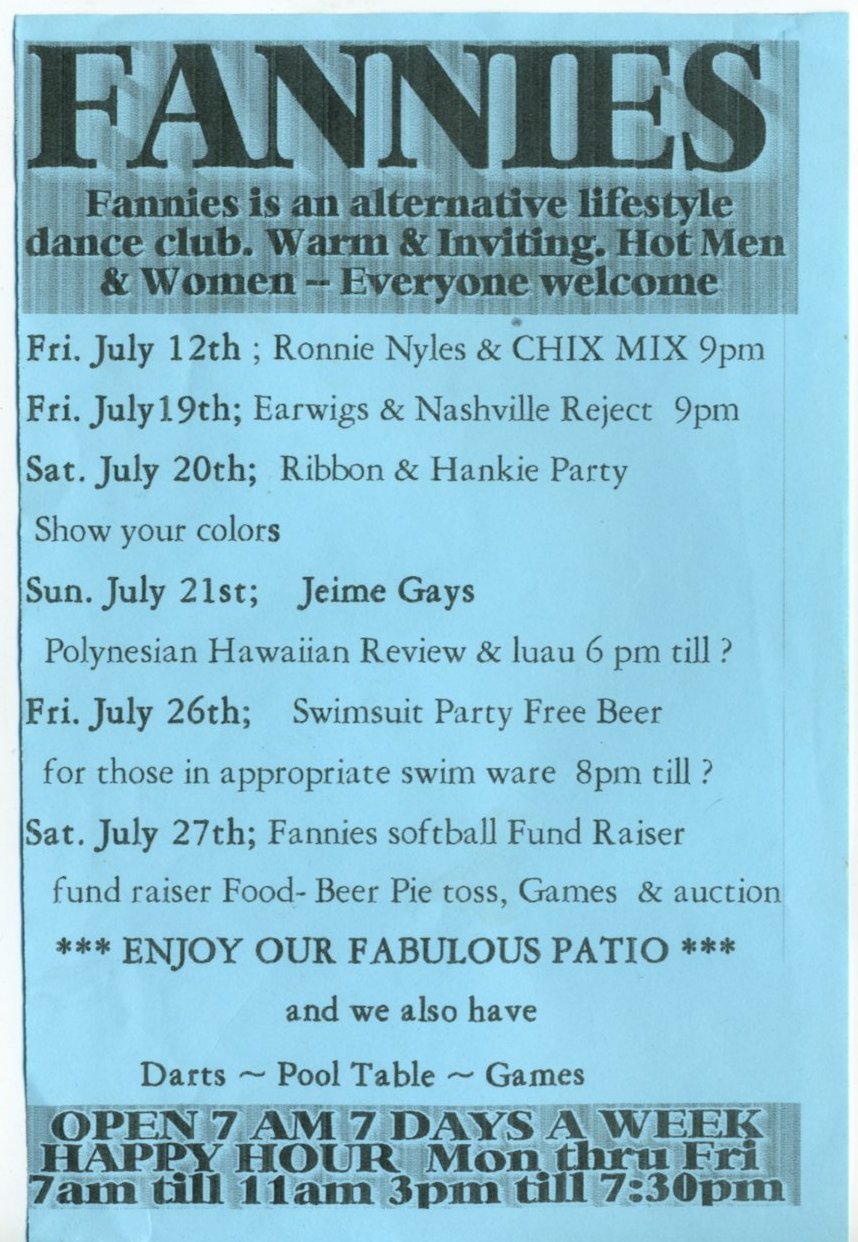 Photos, Article and Ad: 'Entertainers Against AIDS' fundraiser street party next to Fannies