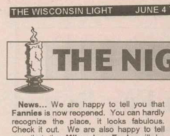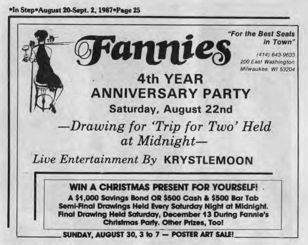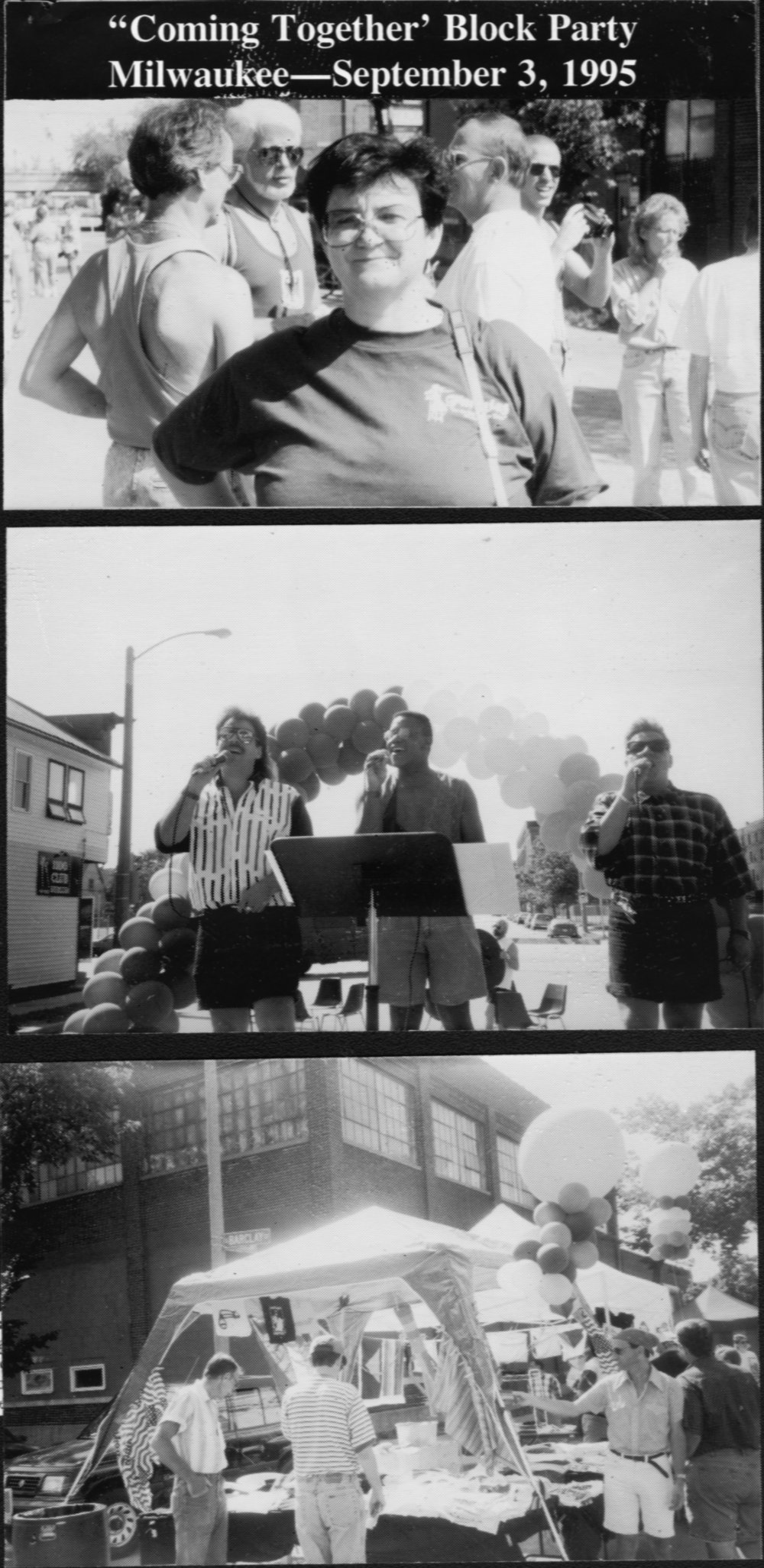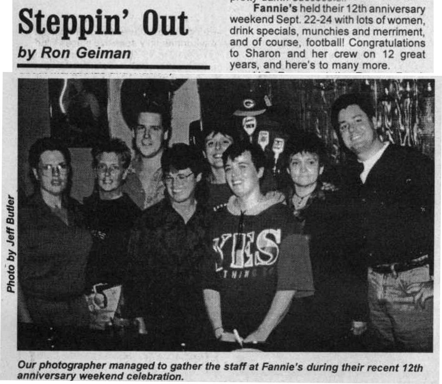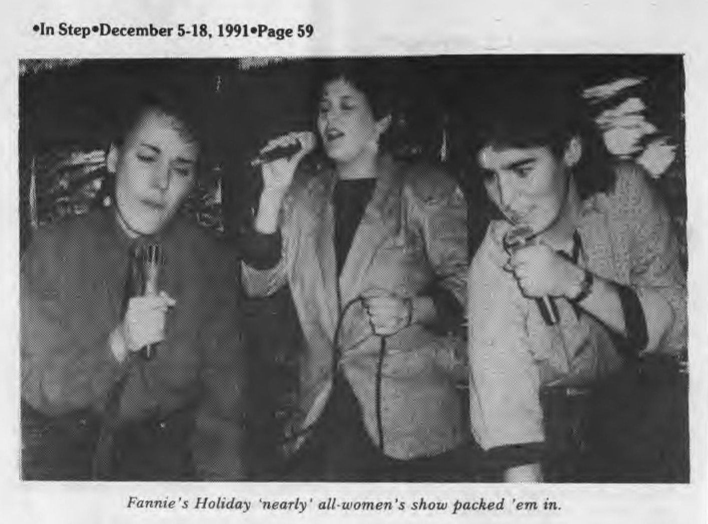 Photos, Article and Ad: 'Entertainers Against AIDS' fundraiser street party next to Fannies
