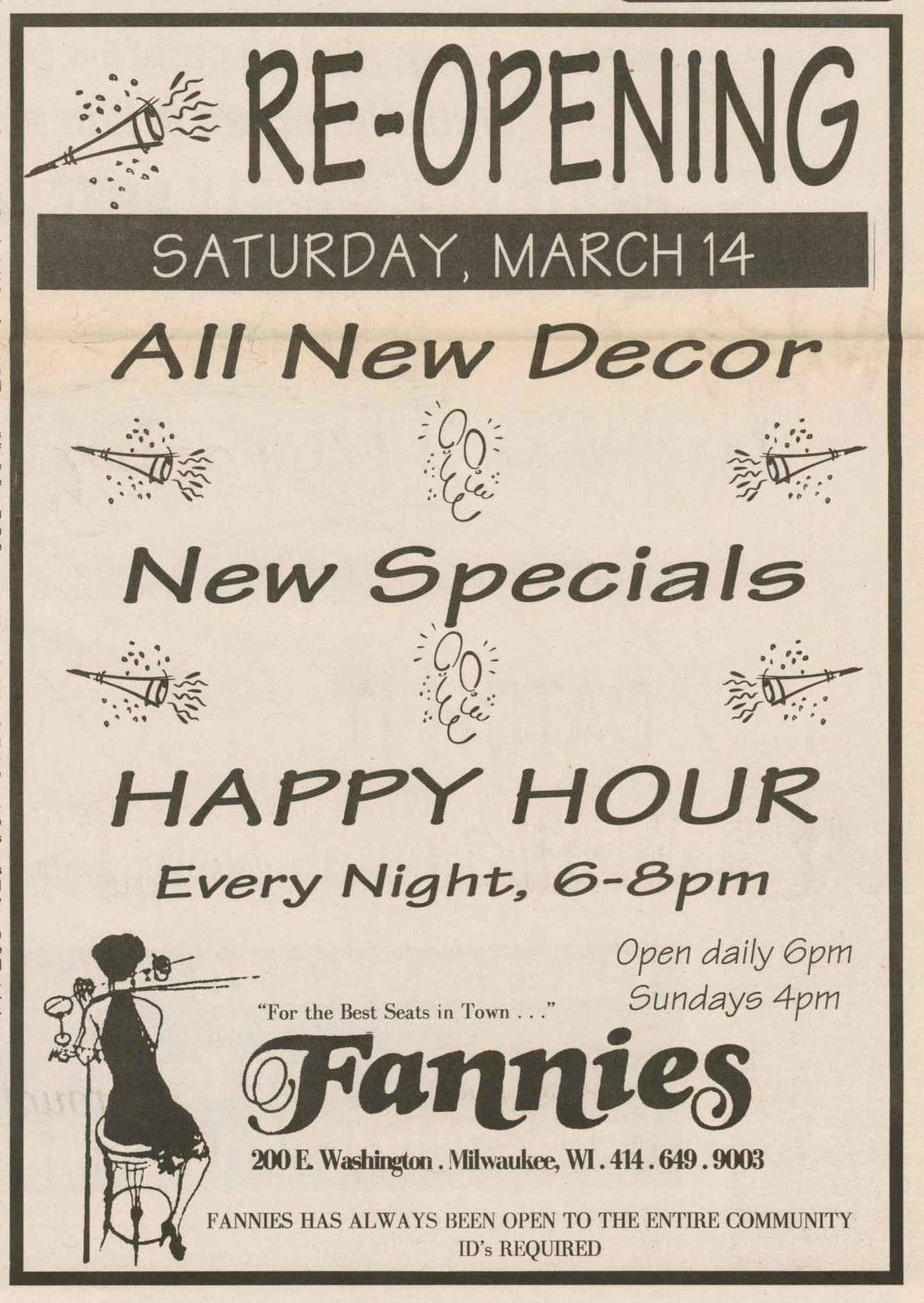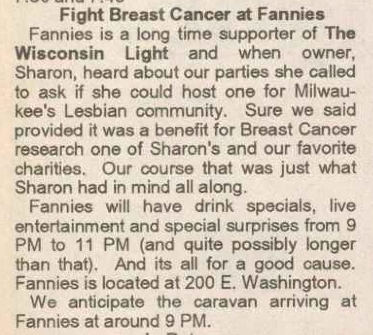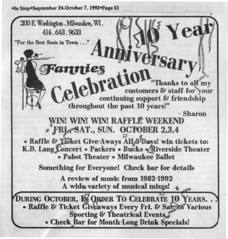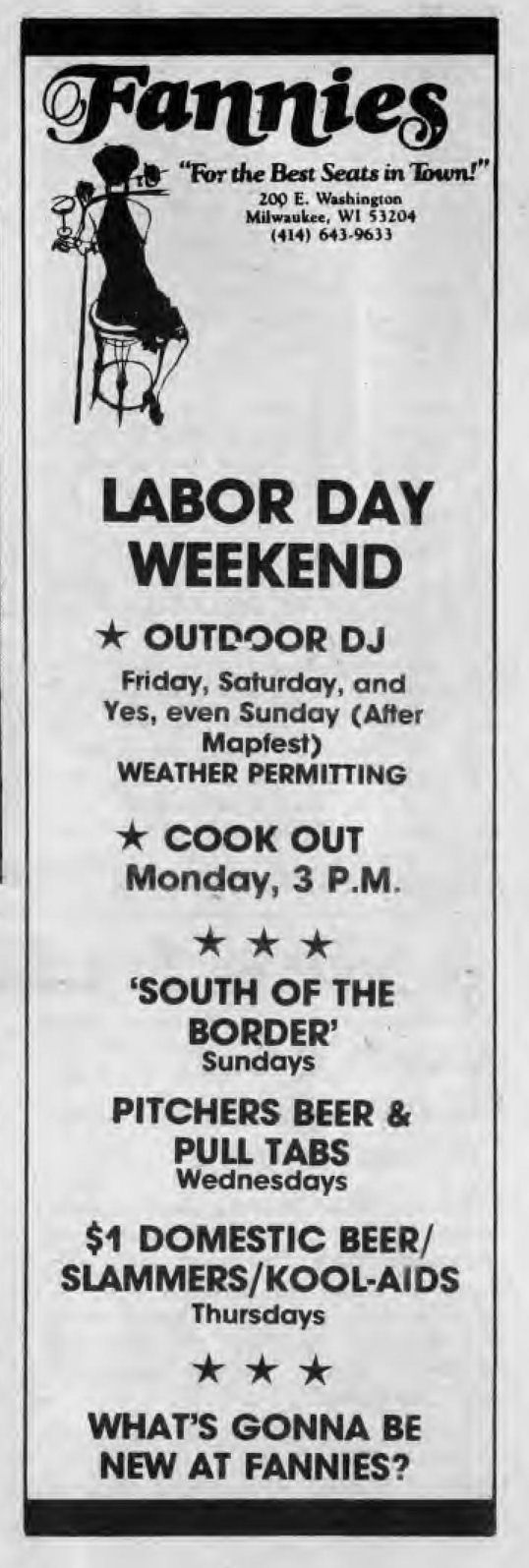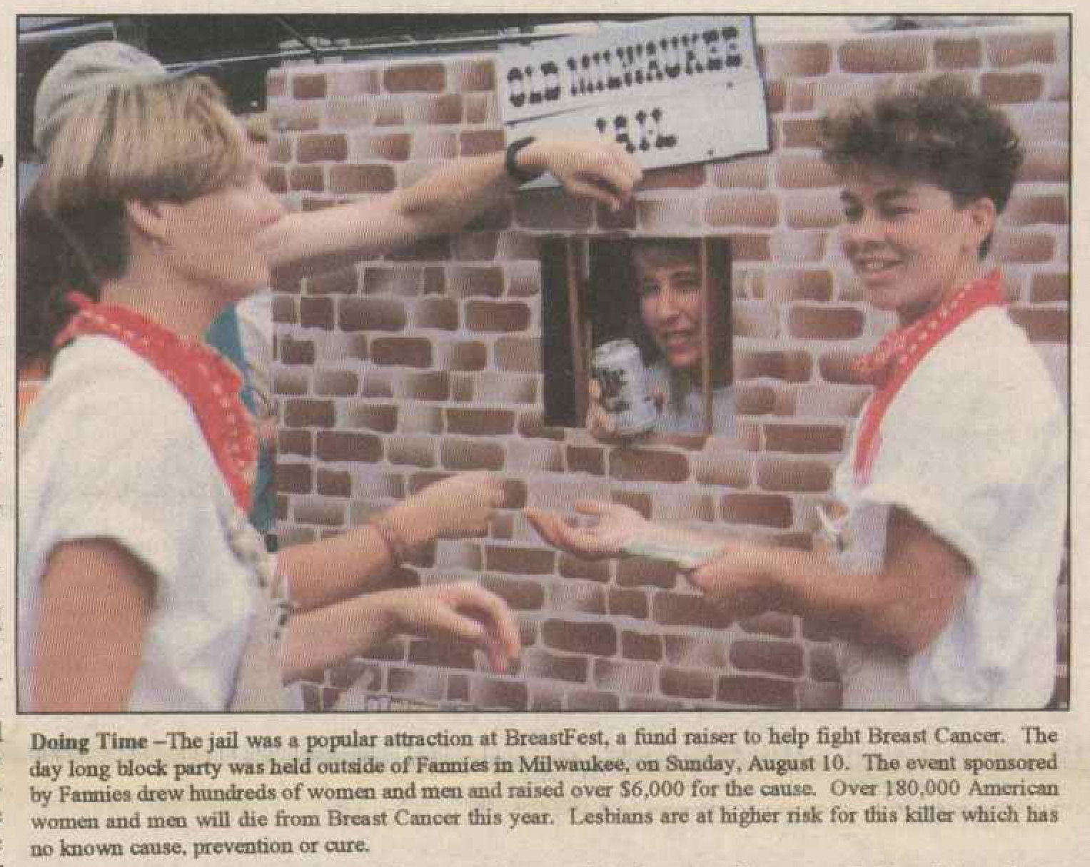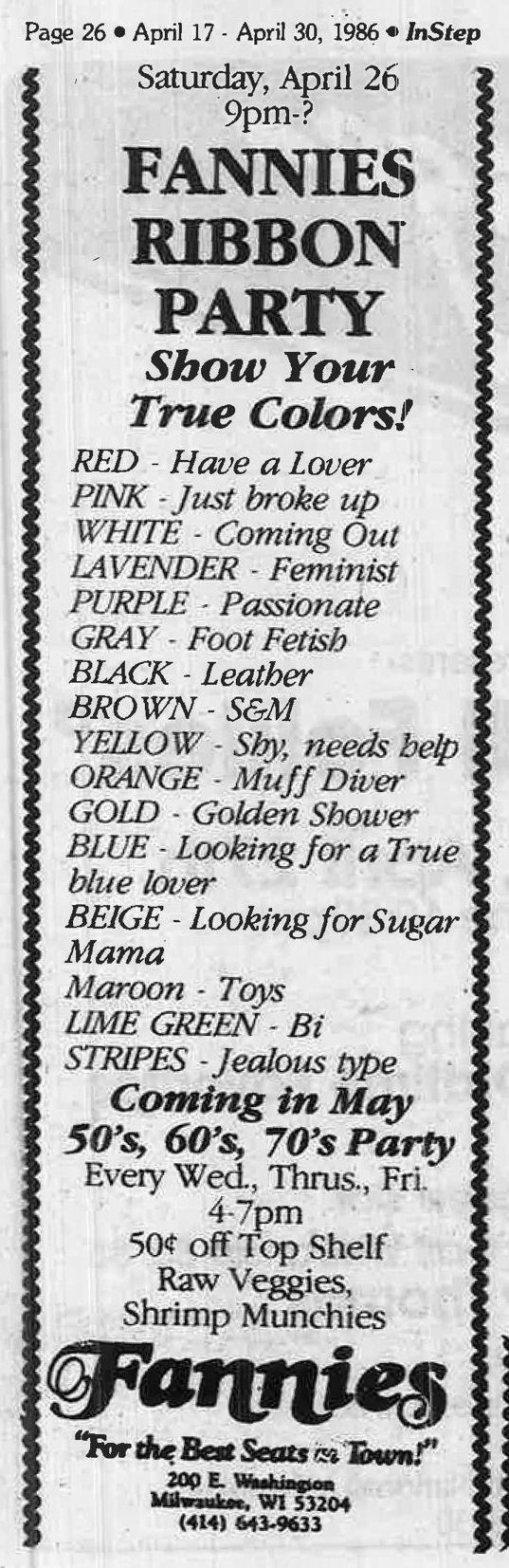 Photos, Article and Ad: 'Entertainers Against AIDS' fundraiser street party next to Fannies