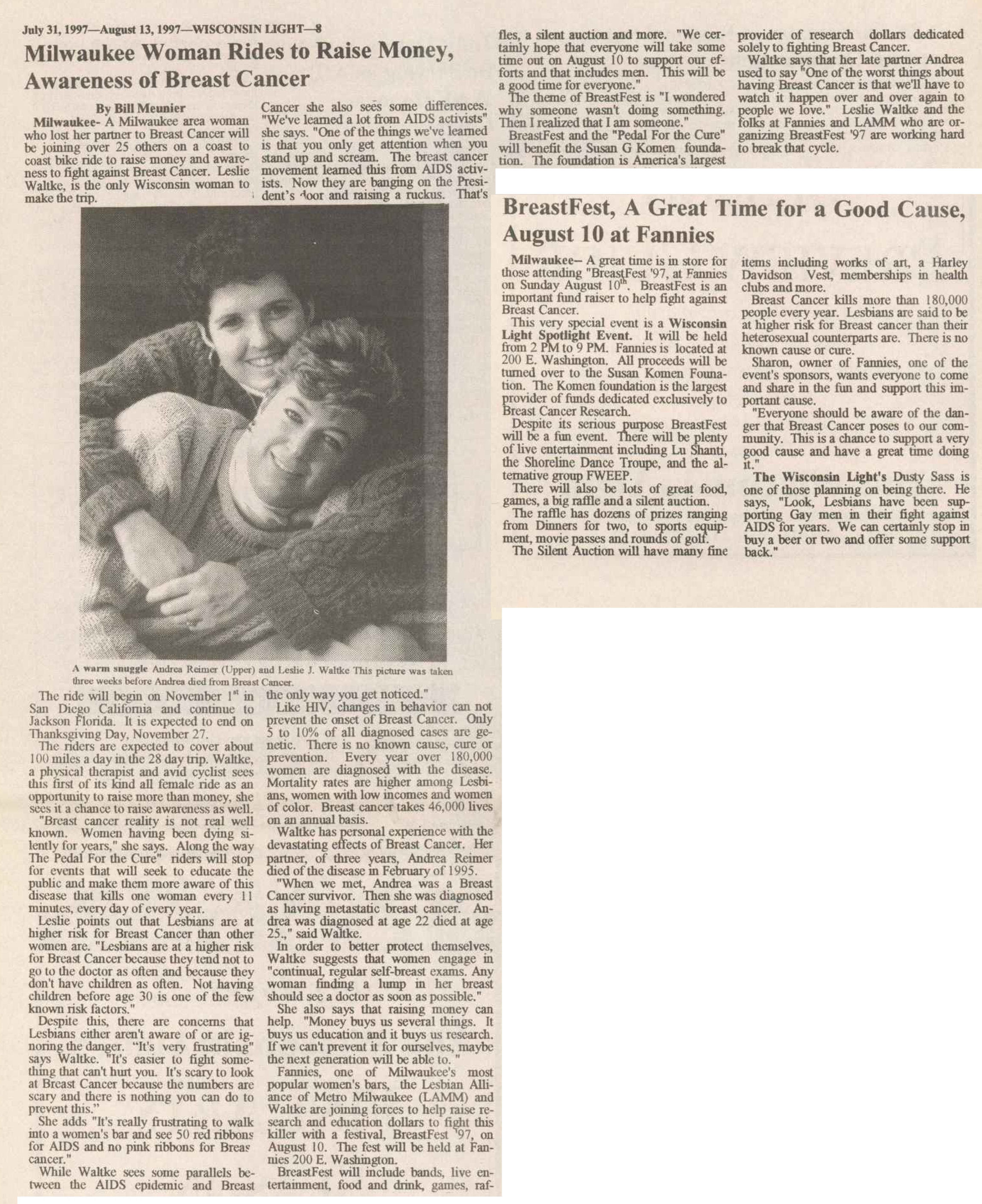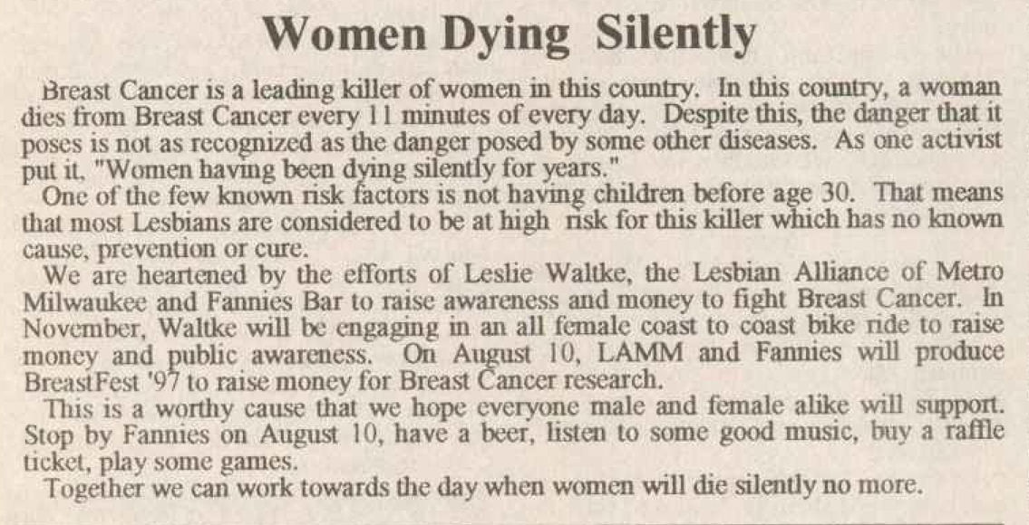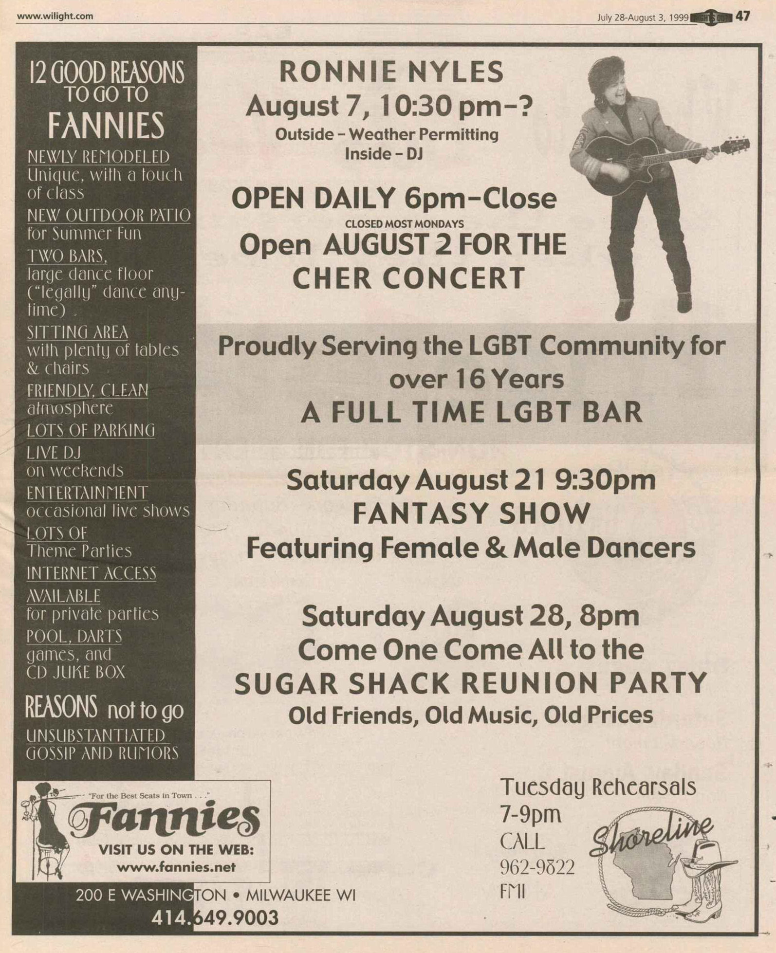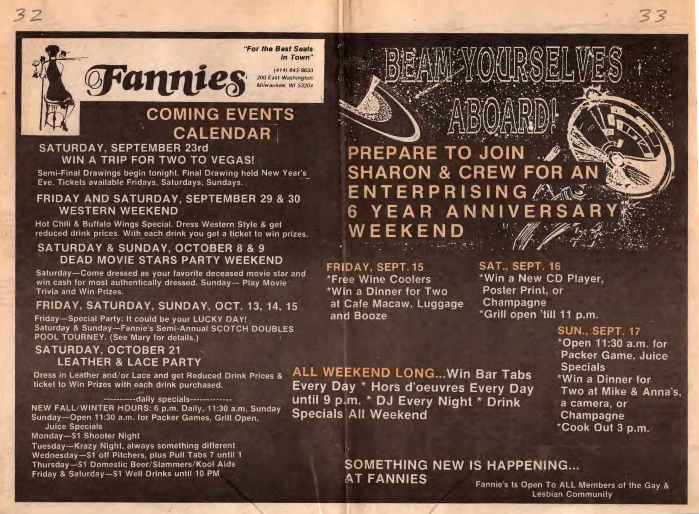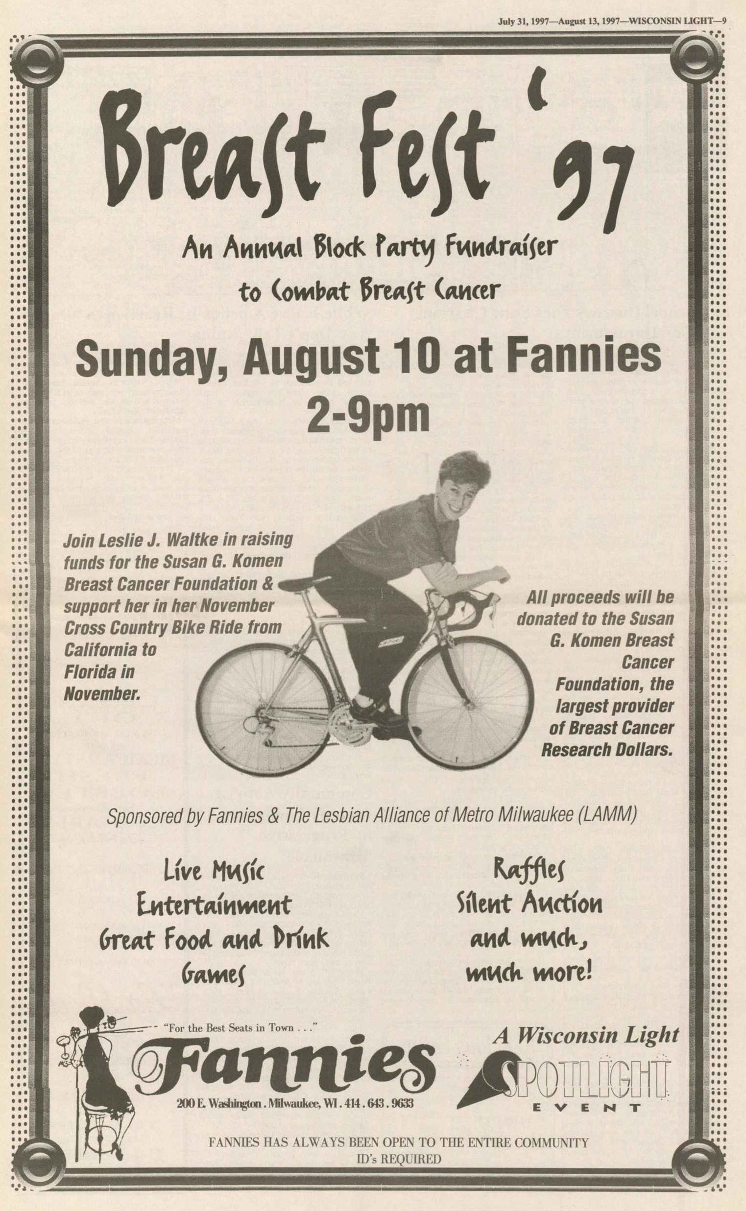 Photos, Article and Ad: 'Entertainers Against AIDS' fundraiser street party next to Fannies