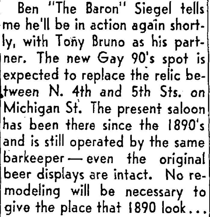 Gay 90s; 433 W Michigan (1954-1968) - owner Ben 'The Baron' Siegel