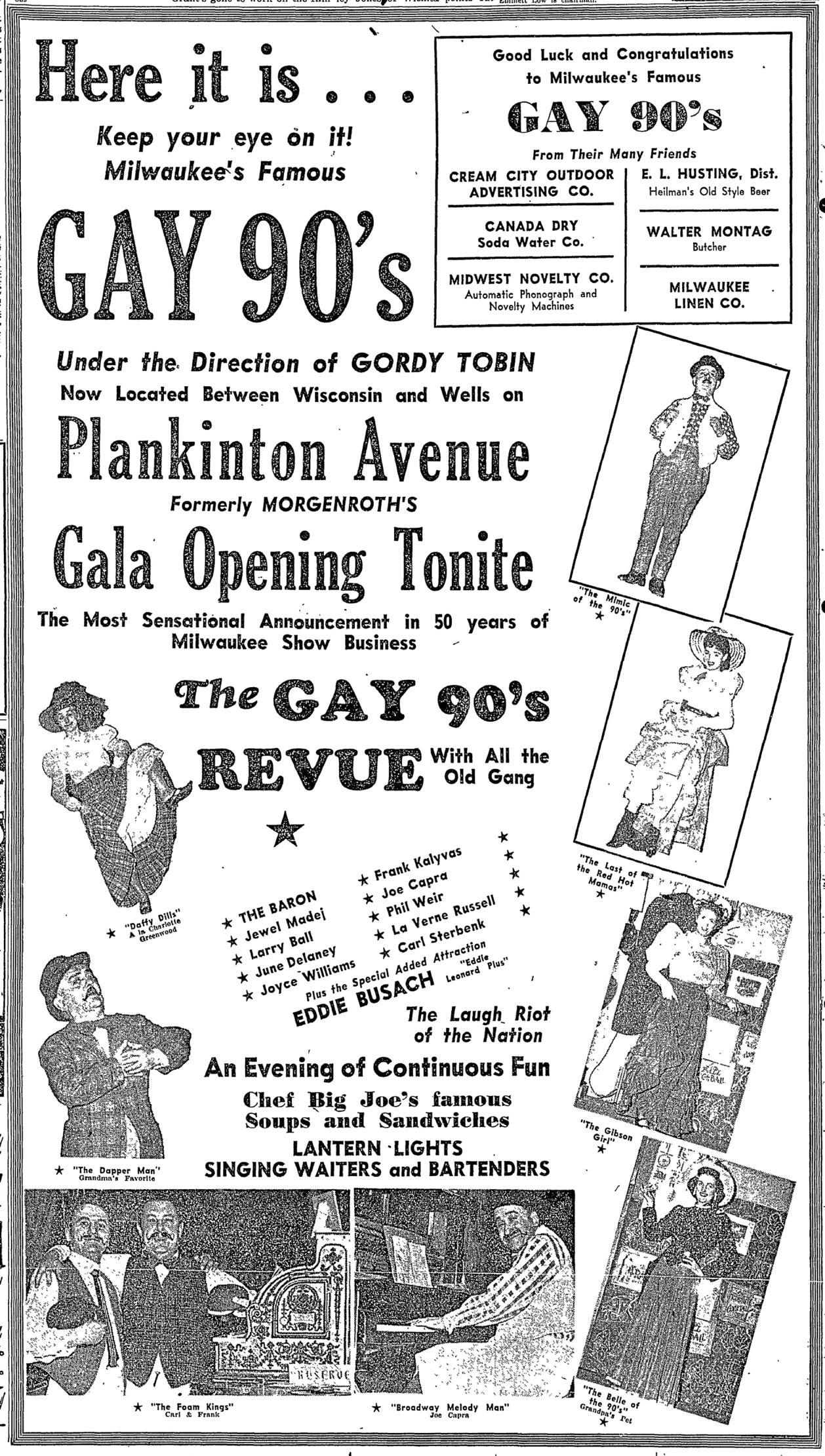 Gay 90s; 756 N Plankinton (1950-1954) - owner Gordy Tobin