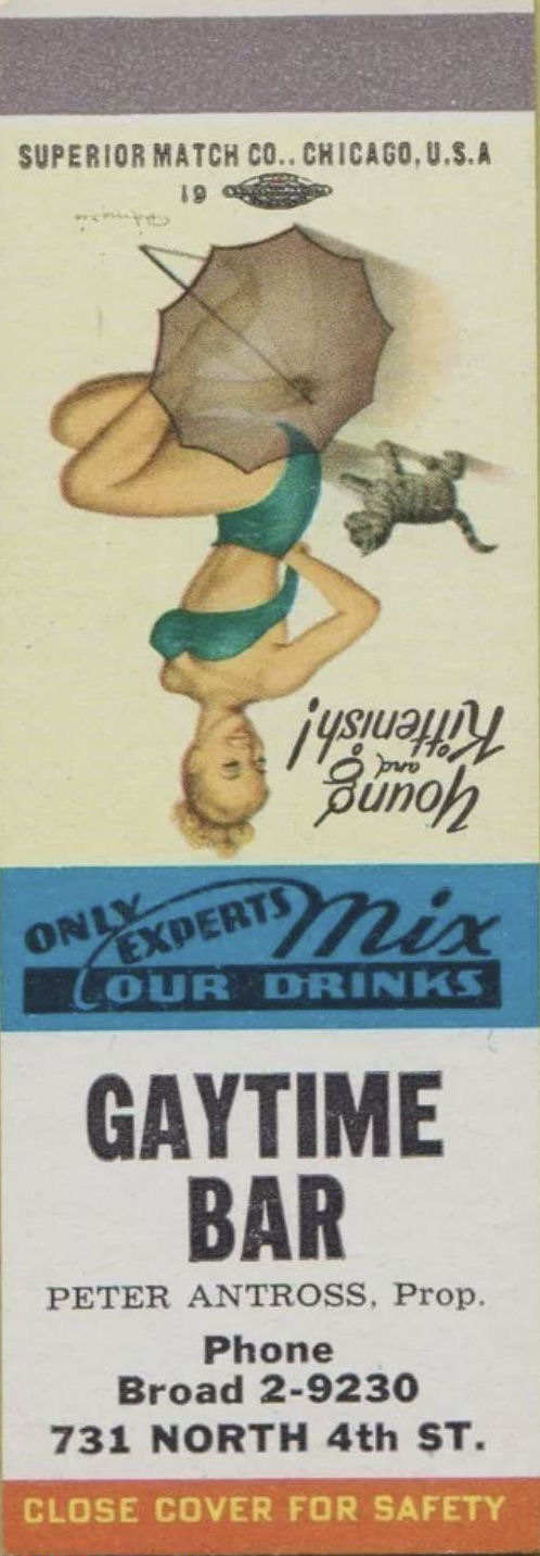 Historian Michail Takach, archivist of this web site, wrote the following history of The Gaytime Bar, formerly known as Sally's, in 2021: June 29, 1944: Milwaukee Common Council overrides police, Army and Navy objections to offer Peter Antross "one more chance" at a tavern license. Antross owns the controversial Sally's Cocktail Bar (731 N. 4th St.)-- popular with gay men, hustlers, hookers and other "unsavories" -- and reformers want the bar gone! The Armed Forces had listed Sally's as "strictly out of bounds" for servicemen -- even though it was directly across the street from the USO office -- because it was *the* leading source of venereal disease infection in Milwaukee. "Certain individuals who loiter in Sally's Cocktail Bar have been traced as the source of infection," said the Milwaukee Journal. They do not mention women. Multiple "disorderly conduct" and "solicitation" arrests occurred at Sally's between 1941 and 1944. In each case, the culprit was subject to a court-ordered medical examination, a psychiatric exam, and a hefty fine. Some were even jailed -- with bail set as high as $1,000. "Sally's is a notorious hell hole," said a judge in 1942, when Antross lost his tavern license. "I can see no reason why it should be allowed to continue." Antross had been in trouble with the law eight times since 1932, when he was arrested for serving liquor during Prohibition at the "Hi-Way 15 Cafe" (619 W. Kilbourn.) More recently, he was arrested four times in one summer for serving liquor outside serving hours. Local papers question why the Council is giving a man with almost a dozen arrests another liquor license. They point out that Antross has been illegally operating Sally's under "sheer subterfuge" -- after losing his license in 1942, he installed his brother as the licenseholder and remained in control of the business. The Common Council is unusually unconcerned. They warn Antross AND the propery owner: even one more violation and the tavern license will be permanently revoked, and no bar would be allowed to operate at 731 N. 4th Street ever again. Walter Malotzke, licensing chairman, issues the license with one condition: Antross must change the name of the bar. "Sally's is too well known among the worst elements of town," he said. "The name Sally's attracts a certain type of customer." Antross promises to change the name. He offers the Common Council his suggestion and they agree it's far more respectable. The license is granted. Shortly afterwards, the Gaytime Bar opens for business. (No joke!) A ferocious fire in 1951 allowed the Antross brothers to modernize the bar. The 1951 vintage neon sign was added to the facade and a new restaurant opened in a former Jewish delicatessen space. Apparently, the red neon "dripped" from above to light up the word "BAR." How was this not saved? The Gaytime was featured in national gay guides until 1967, so it doesn't seem like the clientele changed at all. Somehow, the Gaytime remained open for 24 years. Perhaps George Antross was better at operating under the radar -- or perhaps, by the 1960s, Milwaukee Police had more urgent matters than harassing a pick-up joint. It's unclear if the Antross brothers were affiliated with the Marmigas brothers (owners of the equally-troubled Legion Bar at 745 N. 6th St.) or Christ Mares (original owner of the Mint Bar at 424 W. State.) At any rate, this Greek nightlife syndicate had disappeared by the early 1950s. The Gaytime closed in June 1968 after a violent shootout and attempted robbery. Finally, the Council had reason to call in Antross' last chance. Peter Antross was already gone -- he died in 1962 at age 73 -- but his brother George closed up shop. The reformers finally got what they wanted. The building was razed in December 1968 for surface parking. By 1996, that small surface parking lot had grown to encompass almost two entire city blocks from 4th to 6th, from Wisconsin to Wells -- leaving only the Belmont Hotel next door left in a massive sea of concrete. It's almost impossible to imagine a time when these were dense city blocks packed with life. Today, it's the east end of the Wisconsin Center. GayTime no more! (As shown below, the Gaytime Bar was listed in national Gay Bar Guides from at least 1965, to 1967. The bar was right next to the Belmont Hotel- whose Belmont Hotel Coffee Shop was listed in national gay guides both before and after the Gaytime Bar was listed.)