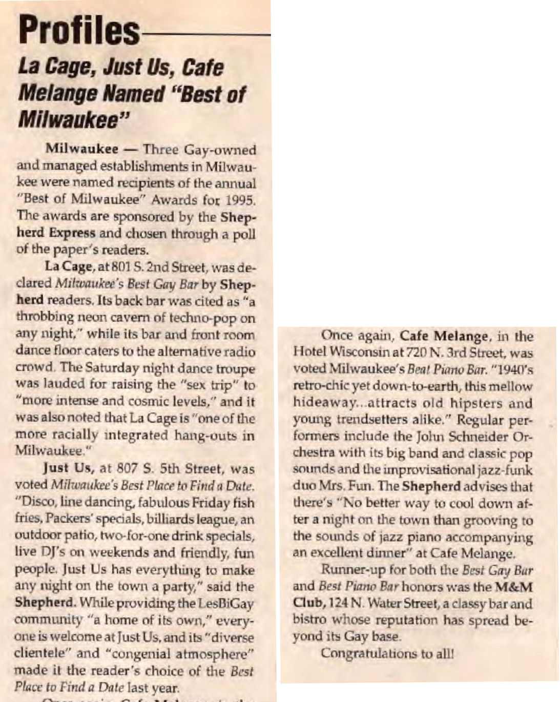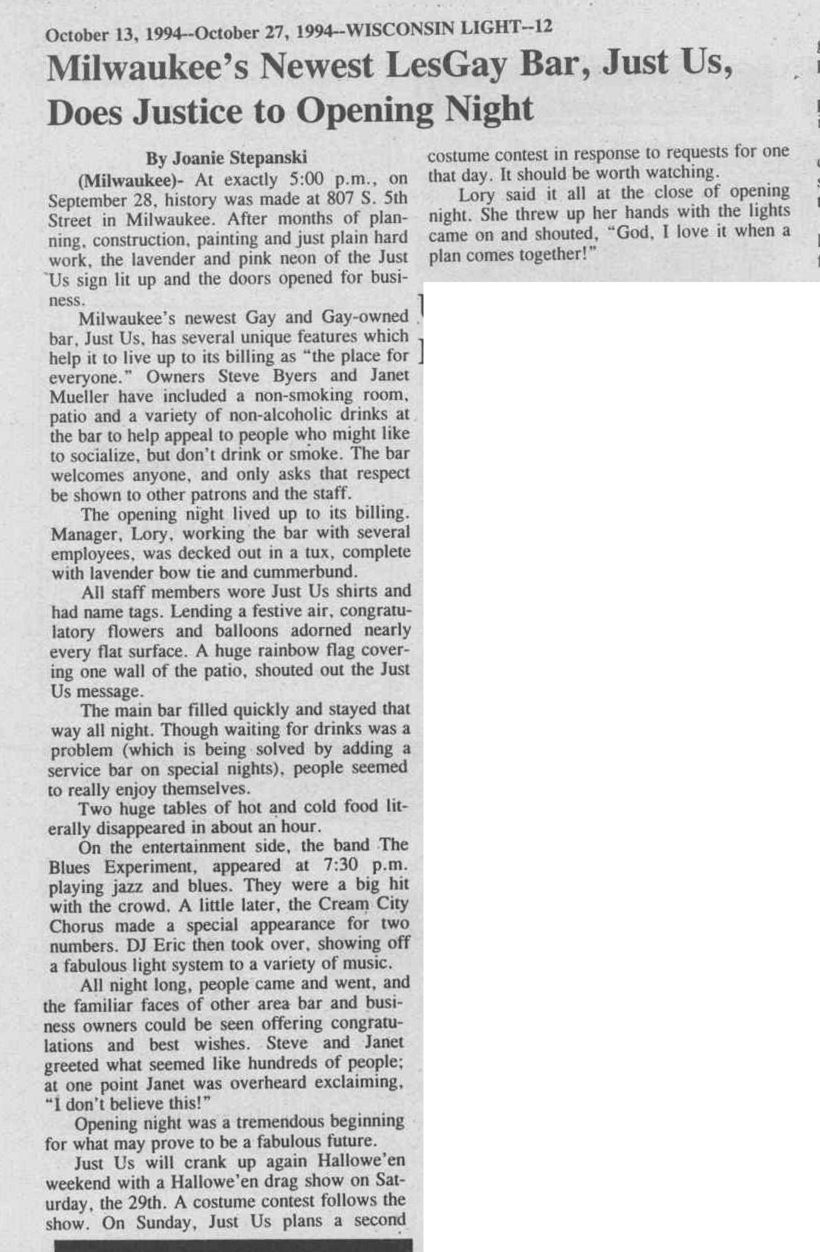 Article: Just Us voted "Best Place to Find a Date" bar in Shepherd Express