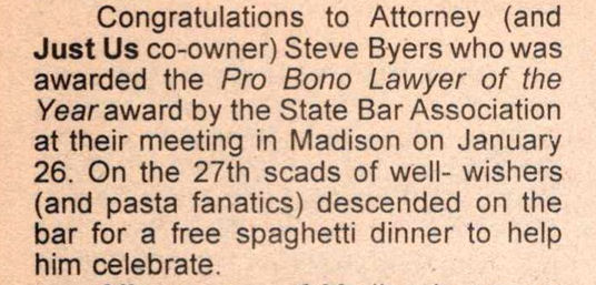 Article: Steve Byers wins Pro Bono Lawyer of year, celebration at bar