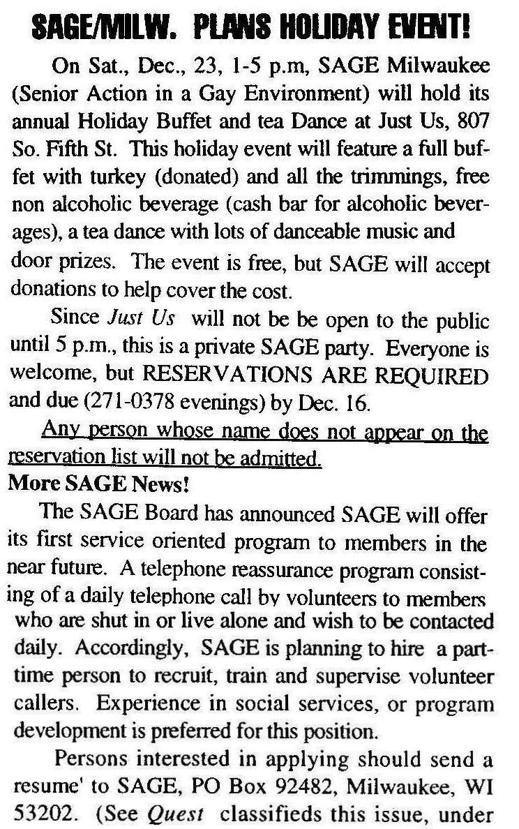 Article: SAGE/Milw. holiday buffet and tea dance