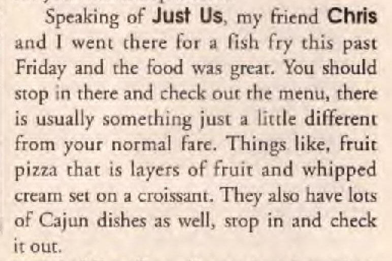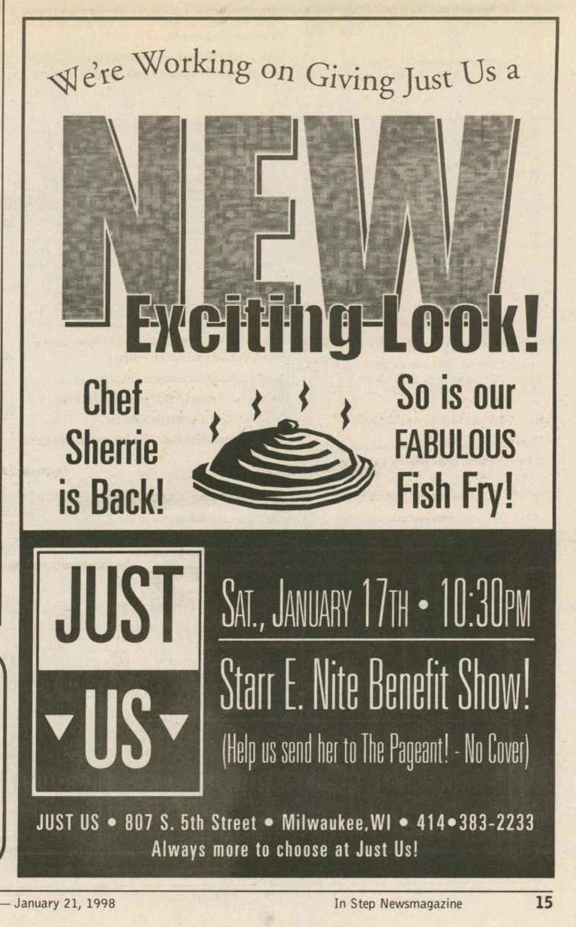 Ad: Friday fish fry, sandwiches Thursdays & Saturdays