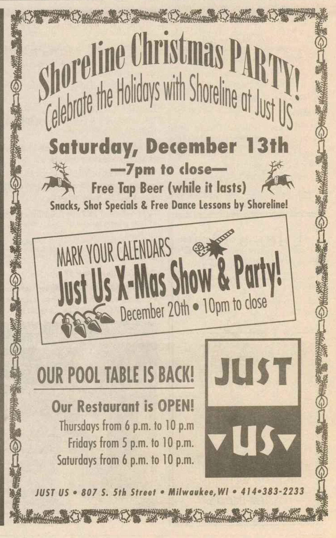 Ad: Shoreline Christmas Party, Christmas Show & Party