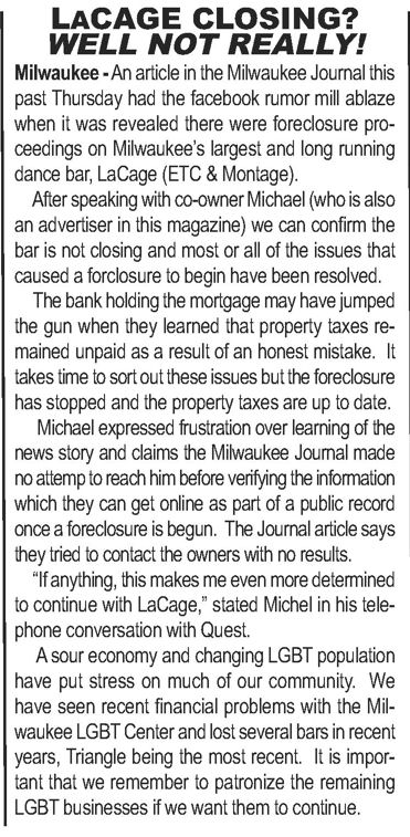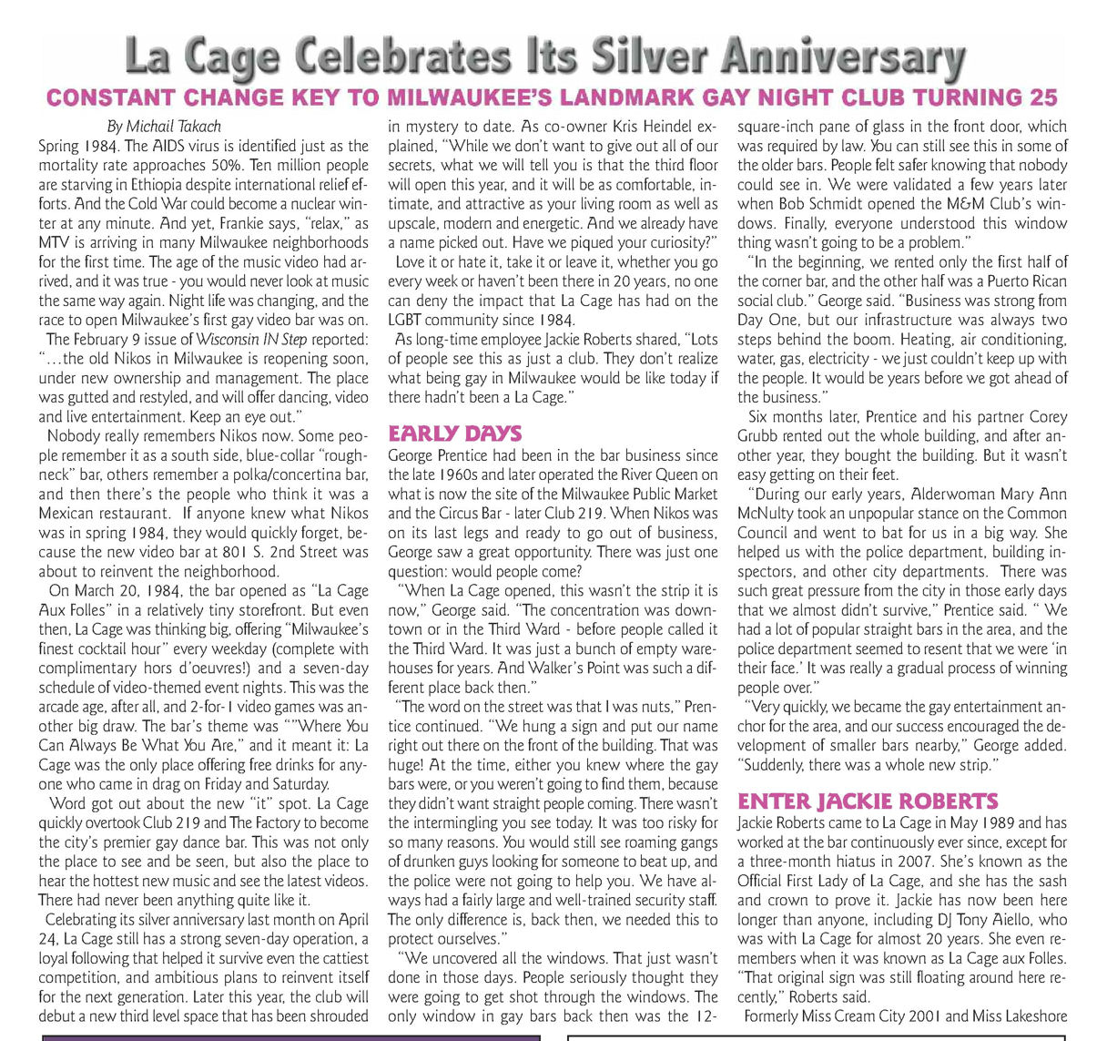 Article: La Cage Celebrates 25th Anniversary (2 of 4 pages shown above)