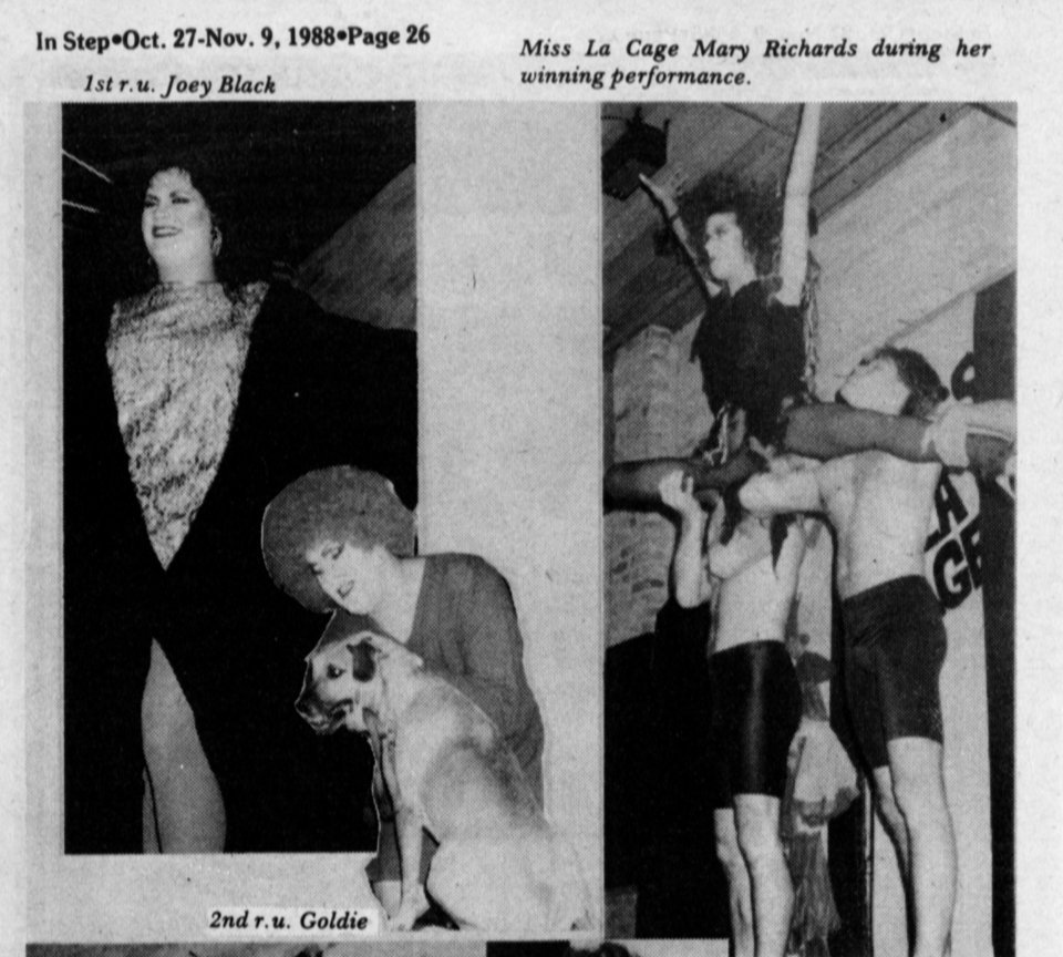 Miss La Cage contest; winner Mary Richards, r.u. Joey Black and Goldie Adams