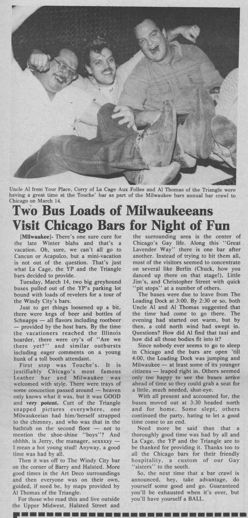Article, Bar crawl to Chicago sponsored by La Cage (along with Triangle and Your Place)