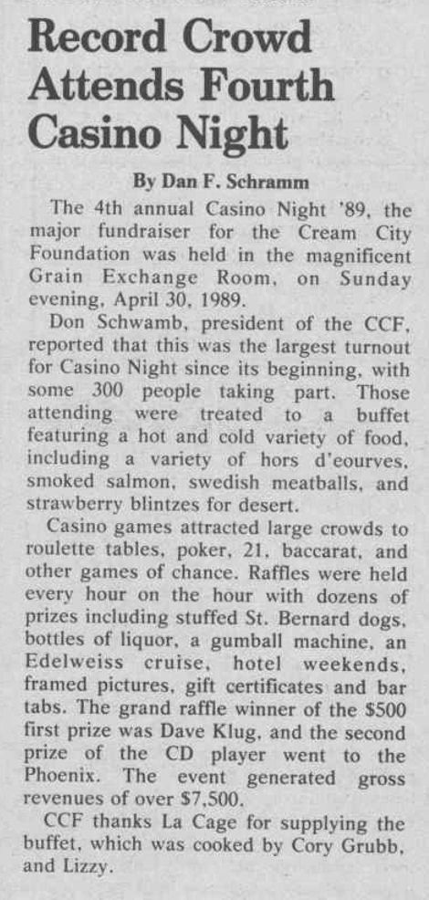Article; Record crowd attends Cream City Foundation Casino Night, catered by La Cage