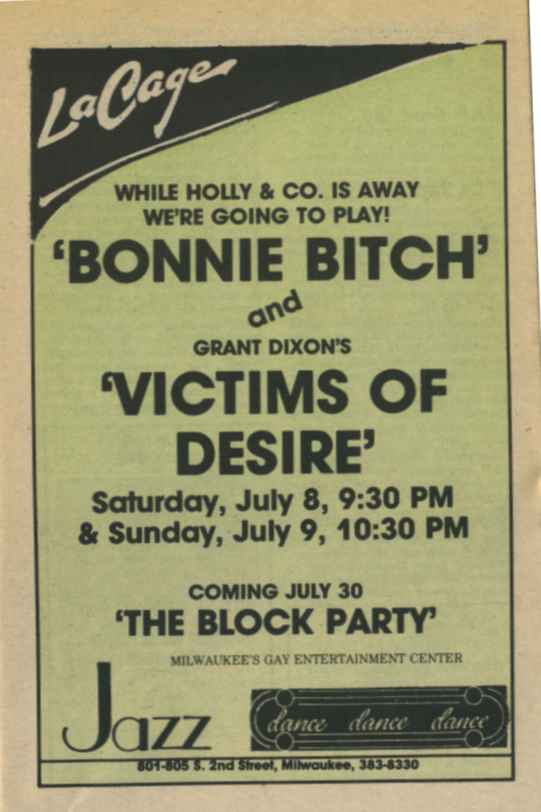Ad: La Cage show "Bonnie Bitch and the Victims of Desire"