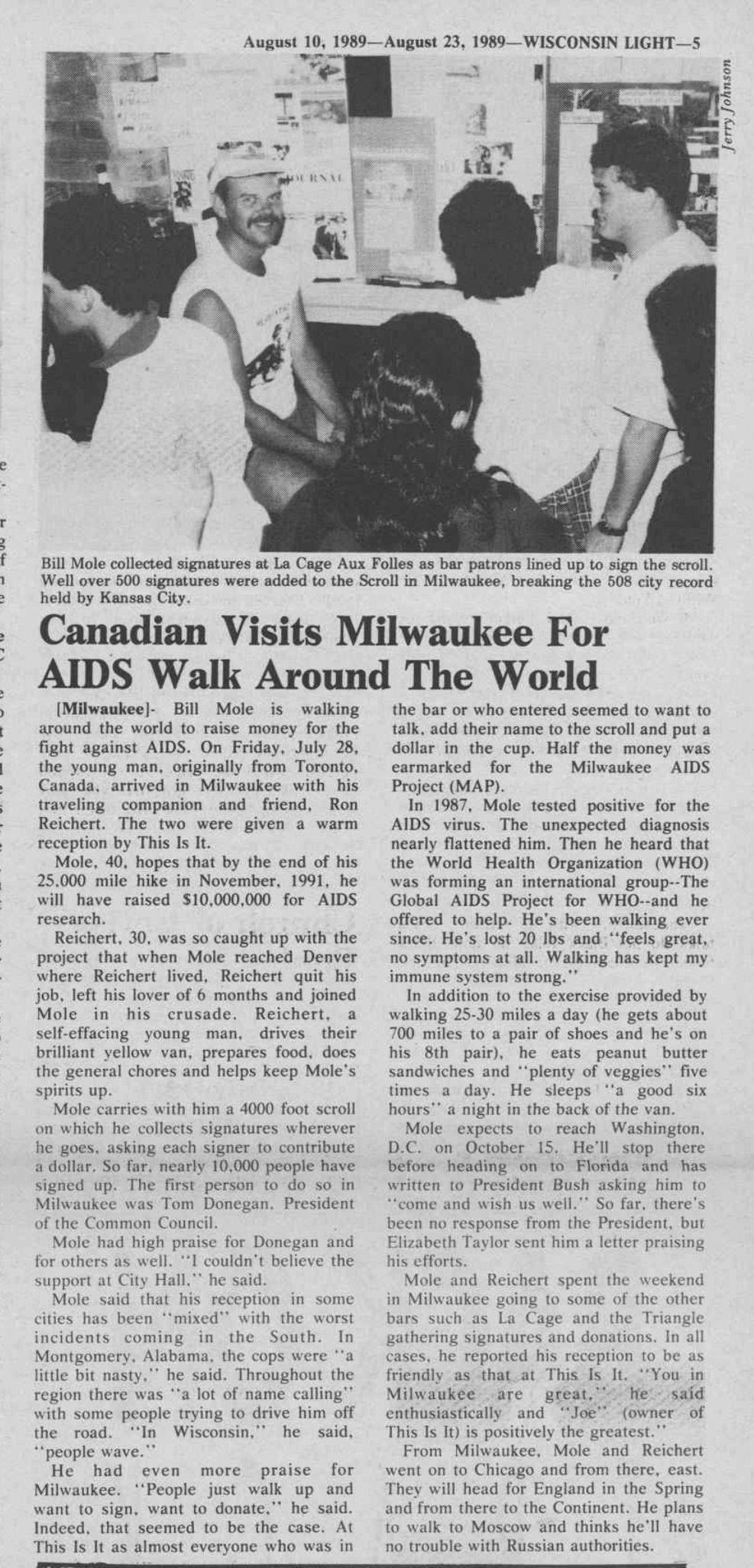 Article: La Cage holds signing for AIDS 'Walk around the World' scroll