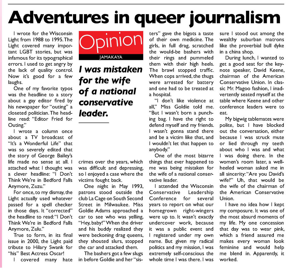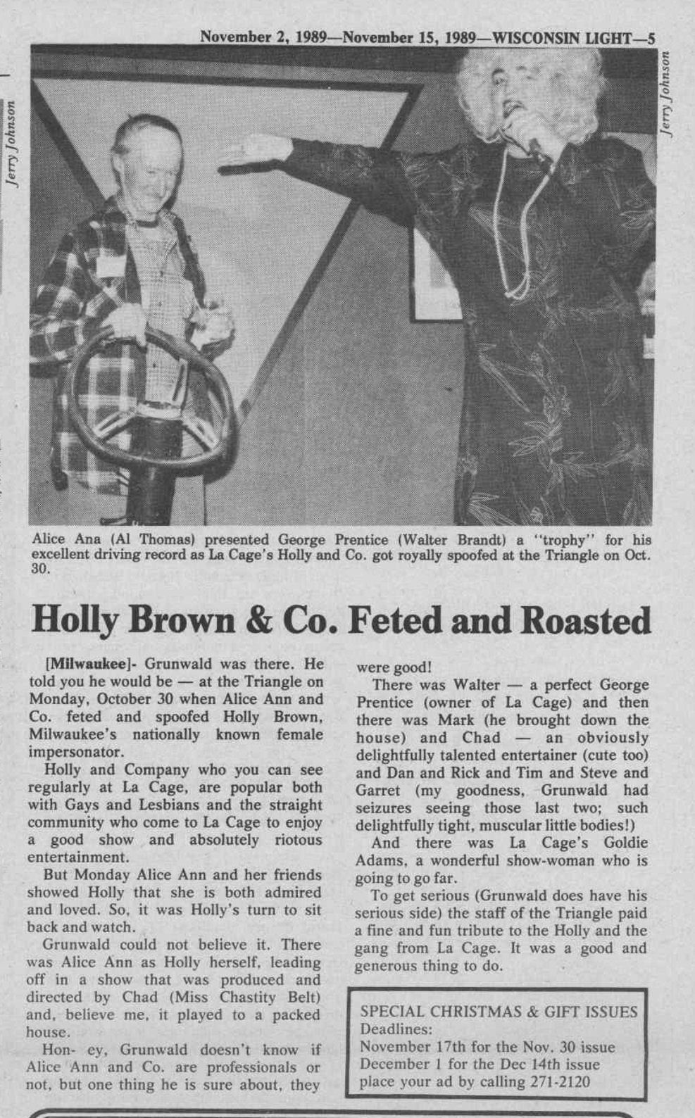 Article: La Cage's Holly & Company roasted by 'Alice Ana' (Uncle Al) at Triangle bar