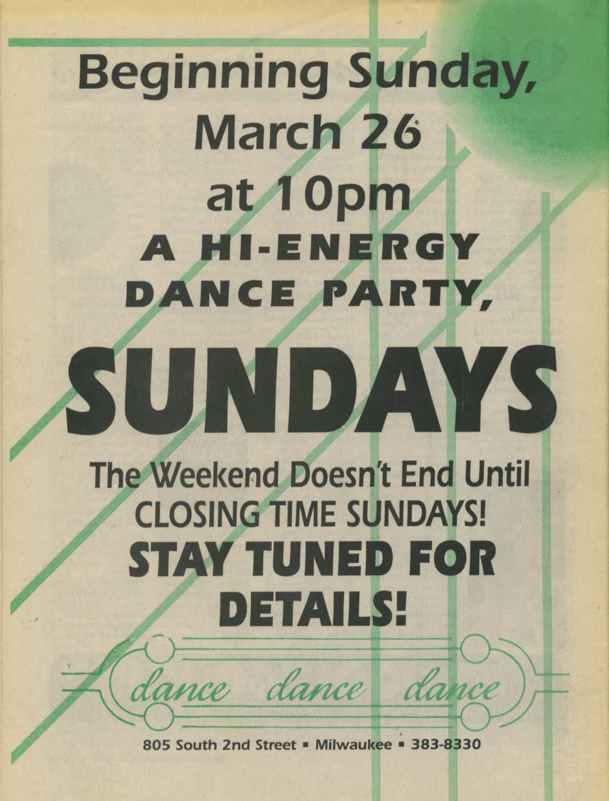 Ad: "Wisconsin's Finest Video and Dance Club"