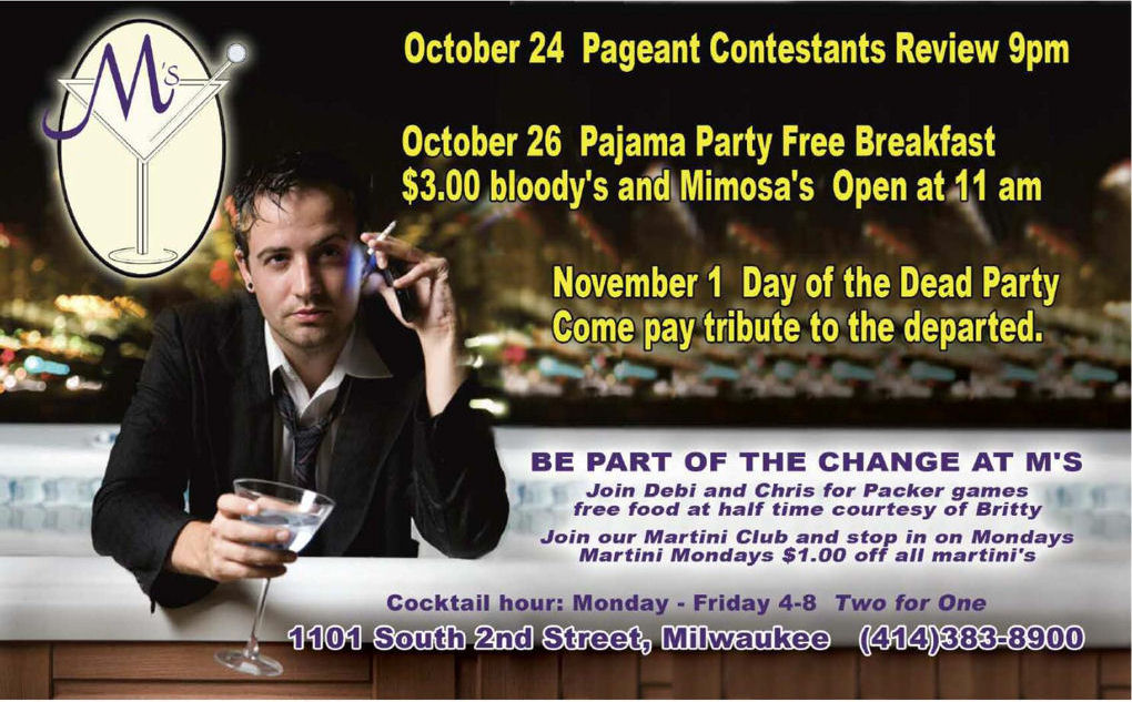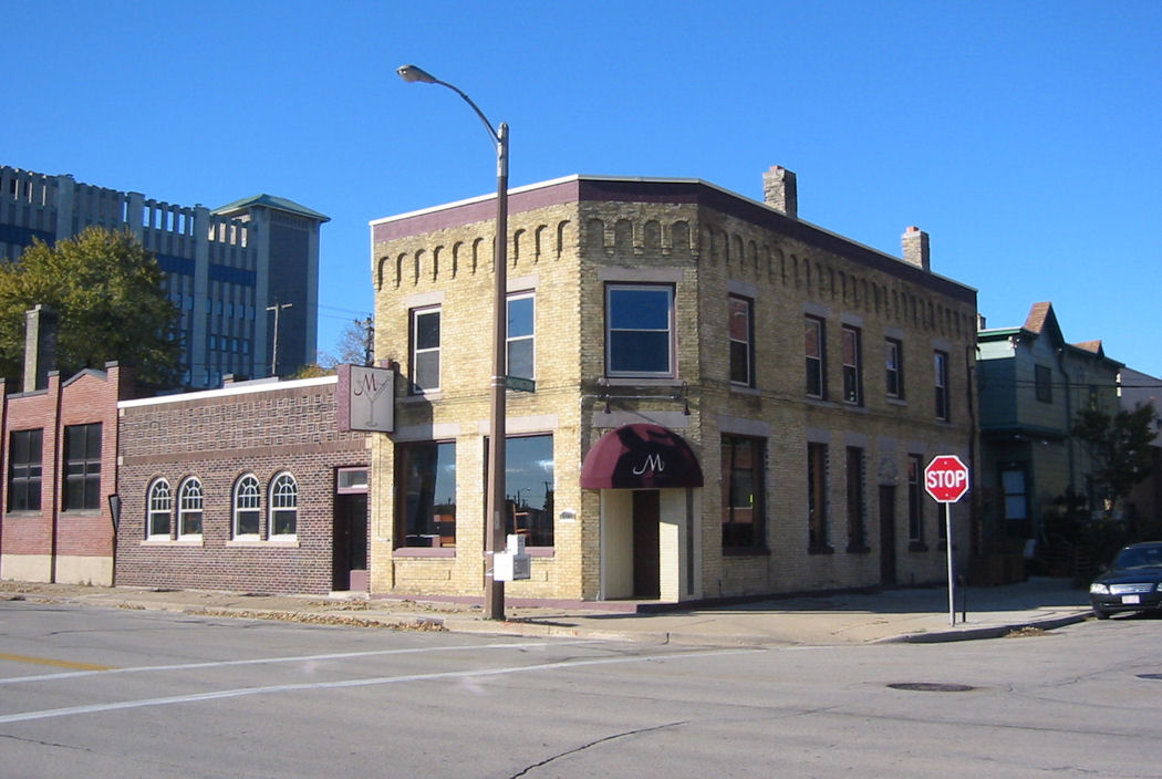 M's bar was opened by some of the staff and customers of the former M&M Club after that bar closed. M’s sought to recreate the M&M experience in a new space. An L-shaped space with woodwork and nice ambiance, it was mildly popular for a time, and for some of the M&M's former customers, a favorite spot with familiar faces. The bar was nicely positioned, about midway between the cluster of several bars at 2nd and National, and a few other bars several blocks farther south near 1st and 2nd and Greenfield. So it was well positioned for the annual gay Pride Parade, and took advantage by making that a big occasion, with live band, food, seating, tent, etc. But the bar was never really popular with most gays and lesbians. It made an attempt to attract new people with an occasional show, but never took off. As a result, the at-one-time-promised restaurant in one side of the space (left wing in photos/ south extension of building) never was opened. In late January 2010, the bar closed. (A book, "LGBT Milwaukee" by Michail Takach, seeks to make the story of LGBT Milwaukee accessible, visible, and portable for future generations--before it is too late. The M&M Club and M's Bar are two of many early LGBT landmarks documented in the book.)