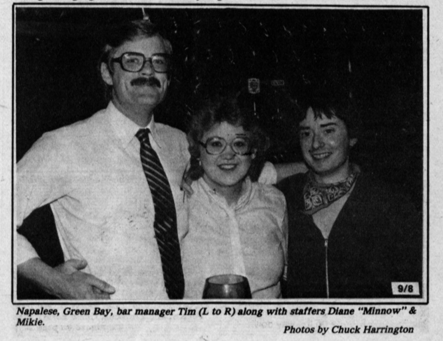 Photo: bar manager Tim with staffers Diane "Minnow" and Mikie